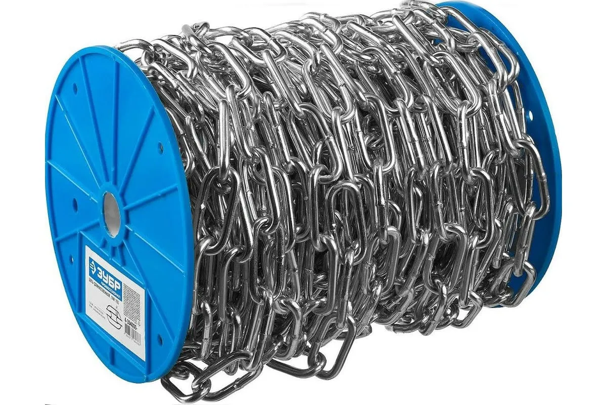 Цепь длиннозвенная Зубр 4-304030-10 предназначена для перемещения грузов и их подъема на нужную высоту с помощью различных грузоподъемных устройств. Она изготовлена из оцинкованной углеродистой стали с помощью сварки. Цепь можно легко укорачивать до нужного размера путем образования петли, вставляя звено в звено. Не предназначена для ударных нагрузок.Характеристики: