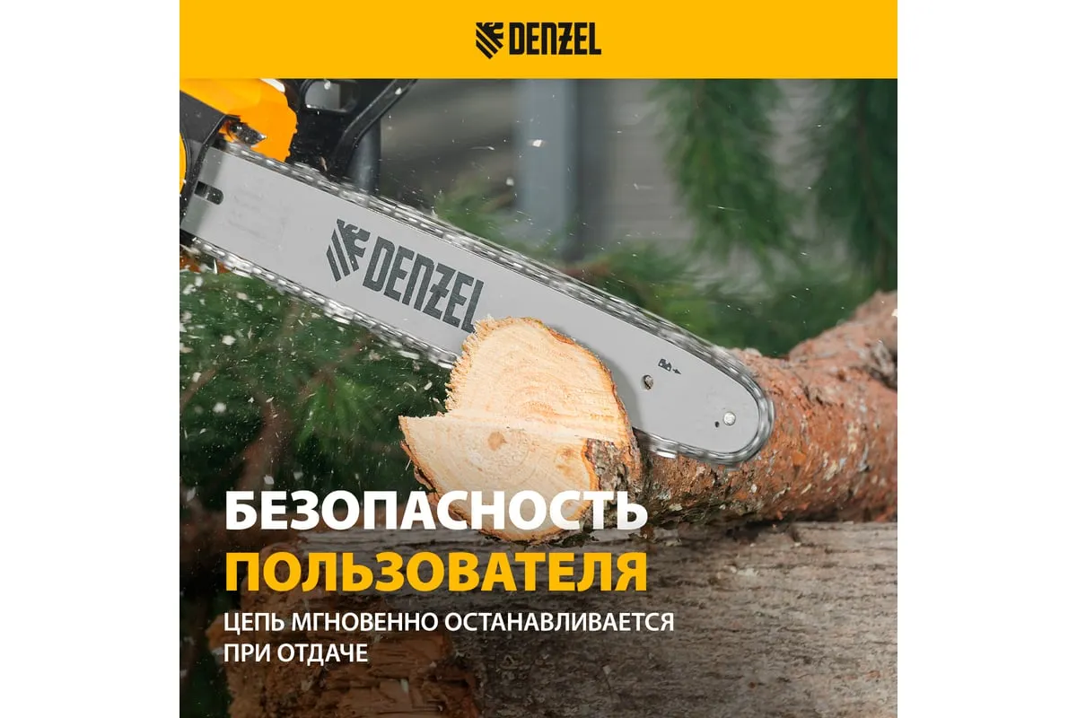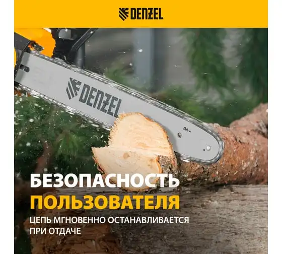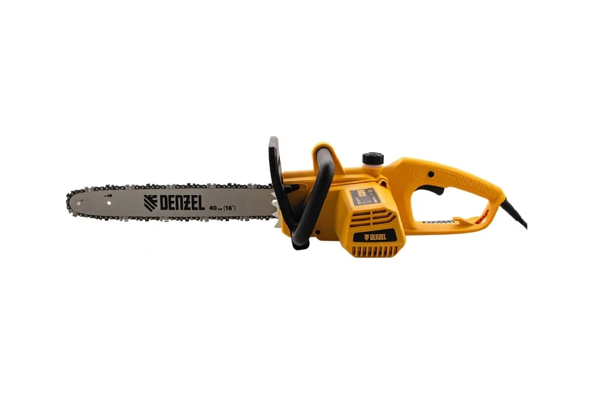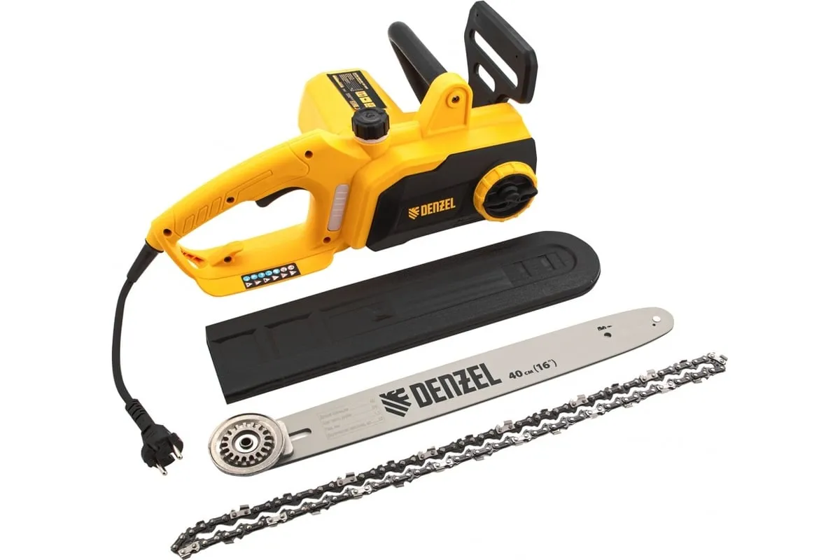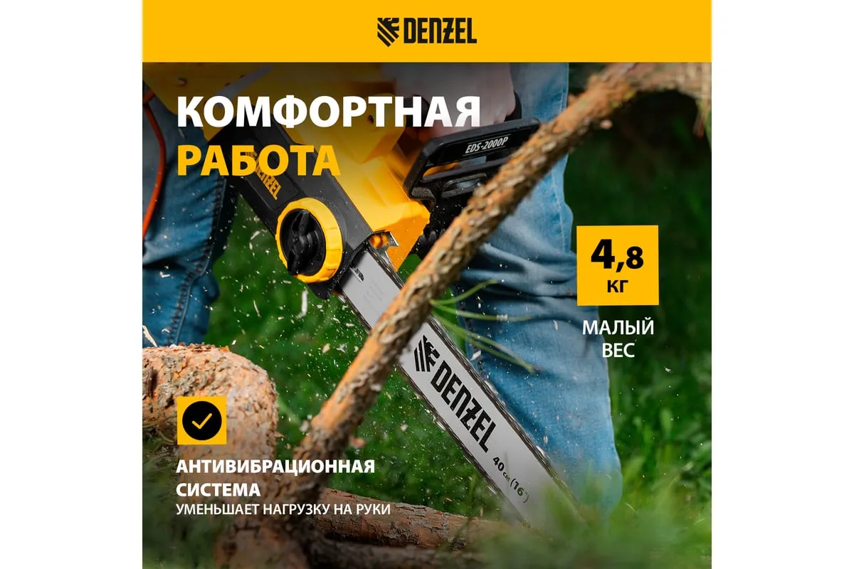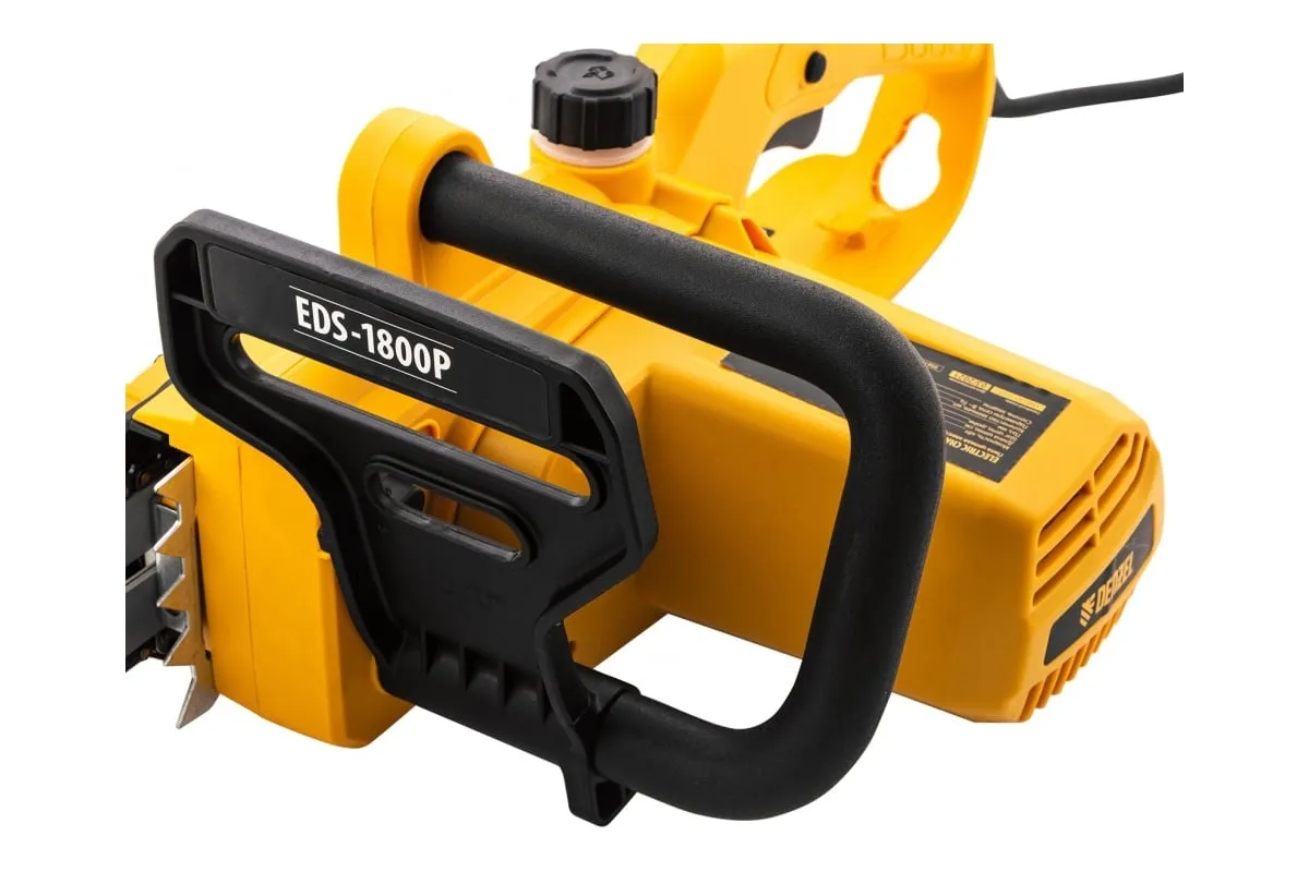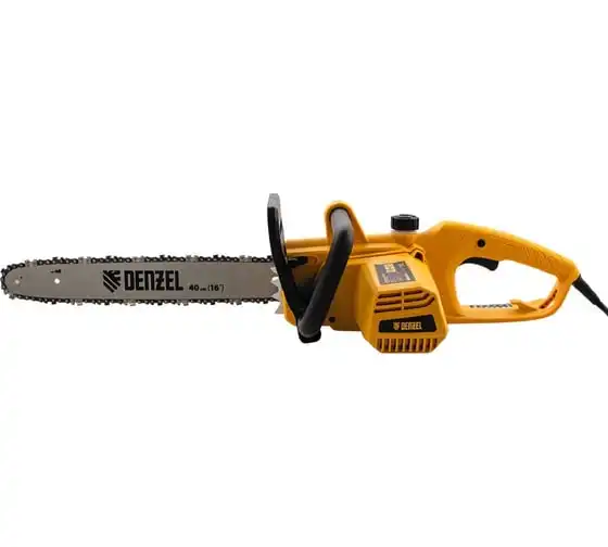 Цепная электрическая пила DENZEL EDS-1800P 95615 оснащена электромотором мощностью 1.8 кВт, который обеспечивает ровный распил различных пород древесины. Шина длиной 40 см справится с валкой деревьев, подравниванием ветвей, заготовкой дров и т.д.