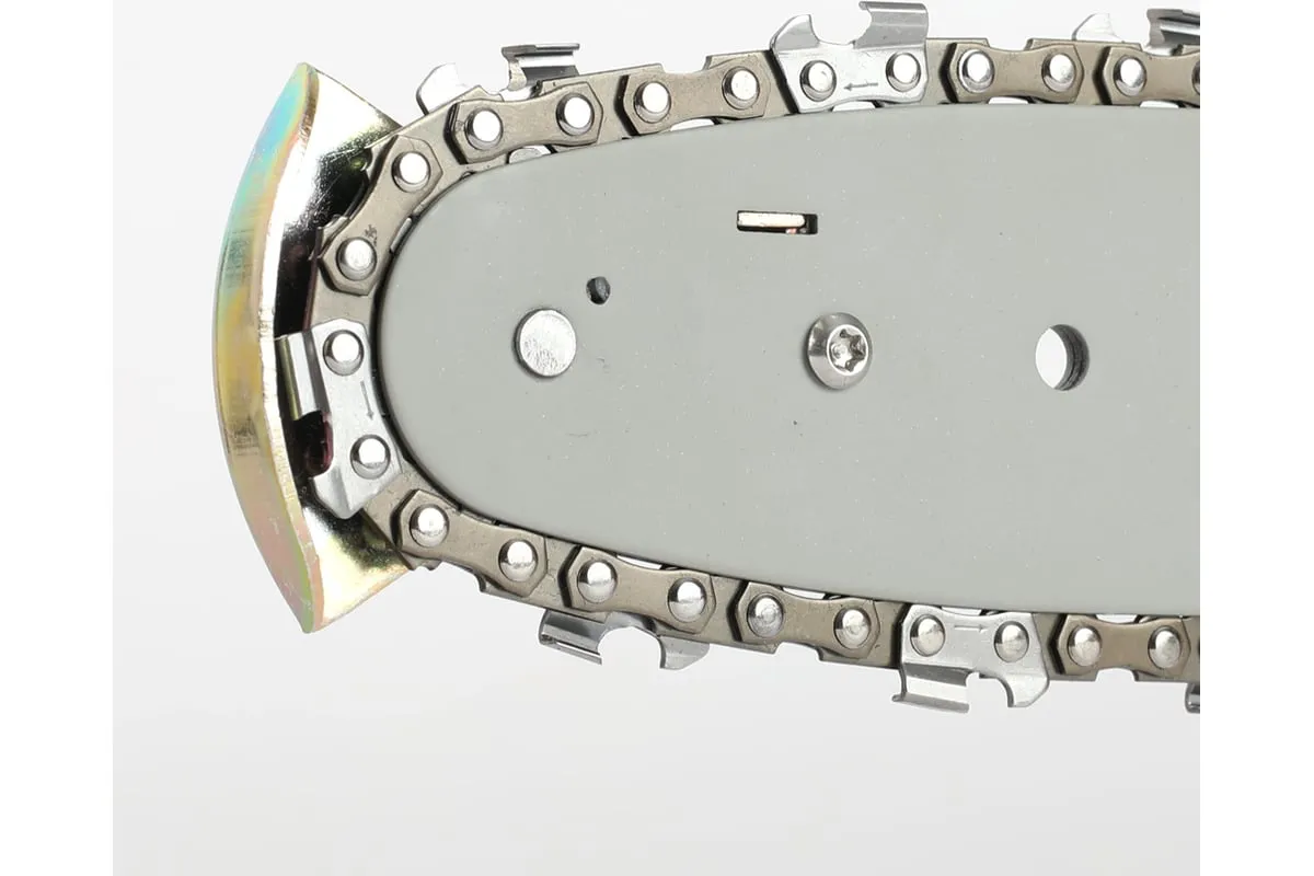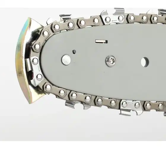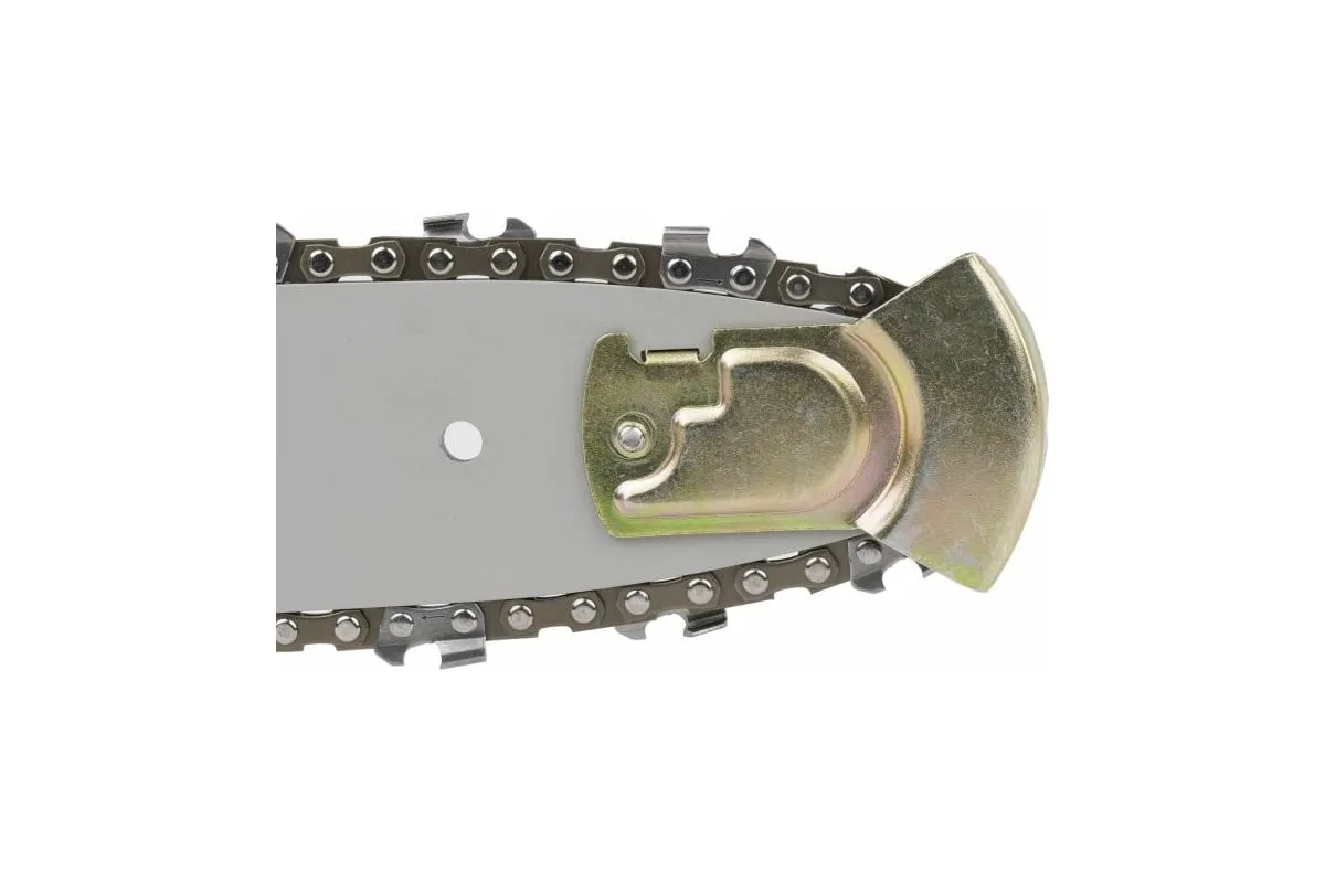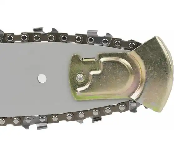 Оснащена защитной насадкой от обратного удара для безопасности оператора. Тормоз цепи выполнен в качестве защитного щитка.