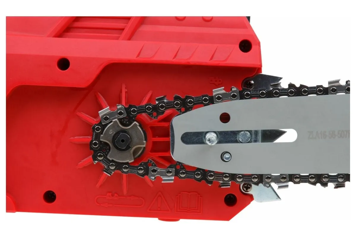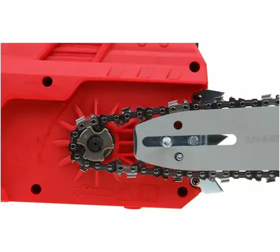 Тормоз пильной цепи останавливает её вращение в случае отскока или при нажатии на защитный щиток - это снижает вероятность травмы во время работы.