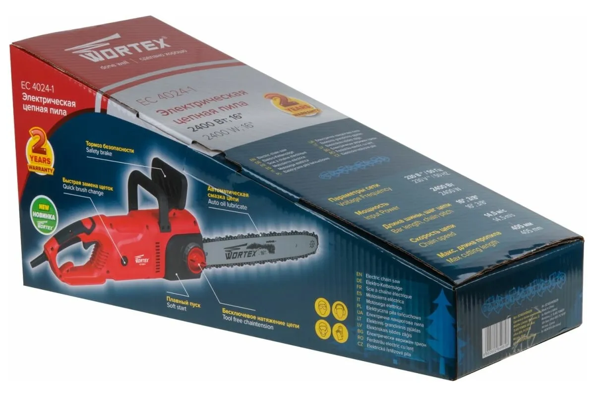 Цепная электрическая пила WORTEX EC4024100029 предназначена для распиливания древесины, как на улице, так и в помещении.