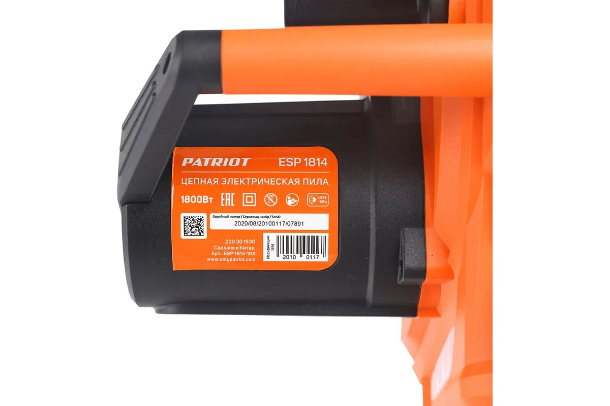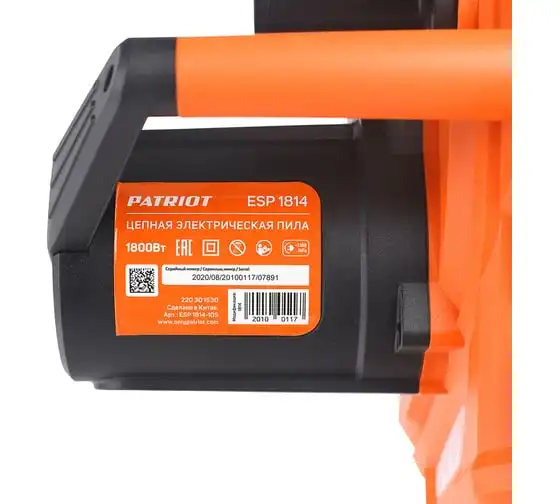 Цепная электропила PATRIOT ESP 1814 220301530 может использоваться в закрытых помещениях, так как не выделяет вредных веществ. Механический тормоз цепи предохраняет оператора от травм. Удобная прорезиненная рукоятка делает хват комфортным и предотвращает скольжение руки.