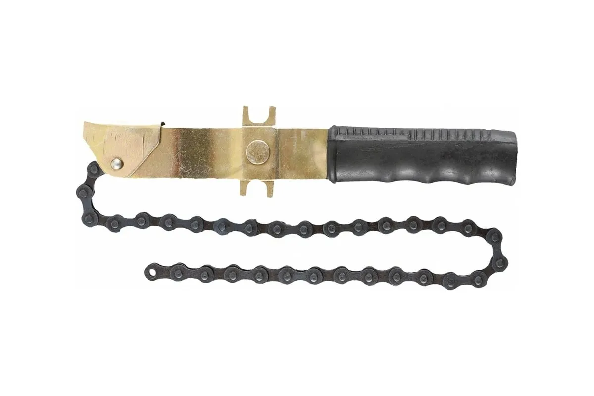 Цепной ключ-съемник масляного фильтра SPARTA 528205 используется в работе профессиональных автомастерских. Модель имеет резиновую рукоятку, которая выполняет роль рычажного механизма. Цепь - это рабочая часть ключа. Она выполнена из прочной стали.