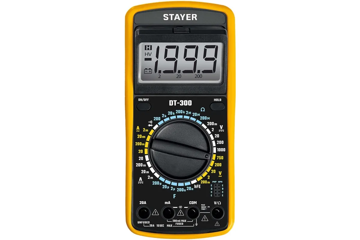 Профессиональный цифровой мультиметр DT-300 отличается расширенной многофункциональностью. Предназначен для измерения тока, напряжения, сопротивления, параметров диодов, транзисторов, частоты. Заменяет несколько измерительных устройств: вольтметр, амперметр, омметр. Прибор оснащен откидным ЖК дисплеем и складной подставкой. Используется для проведения измерений электрических параметров сети и приборов