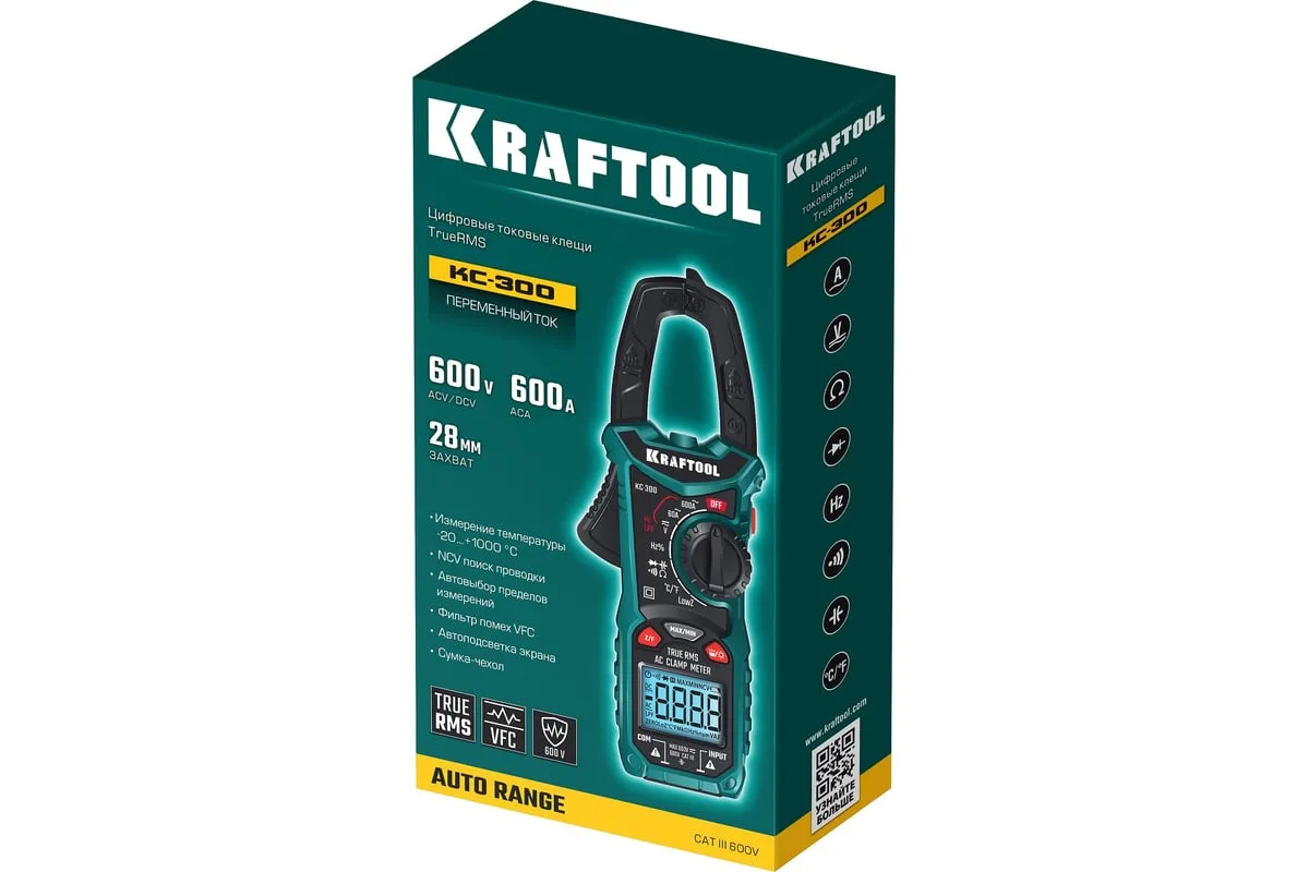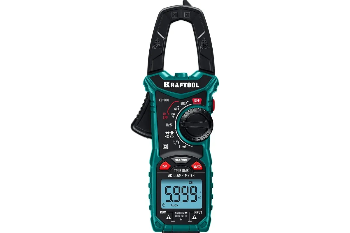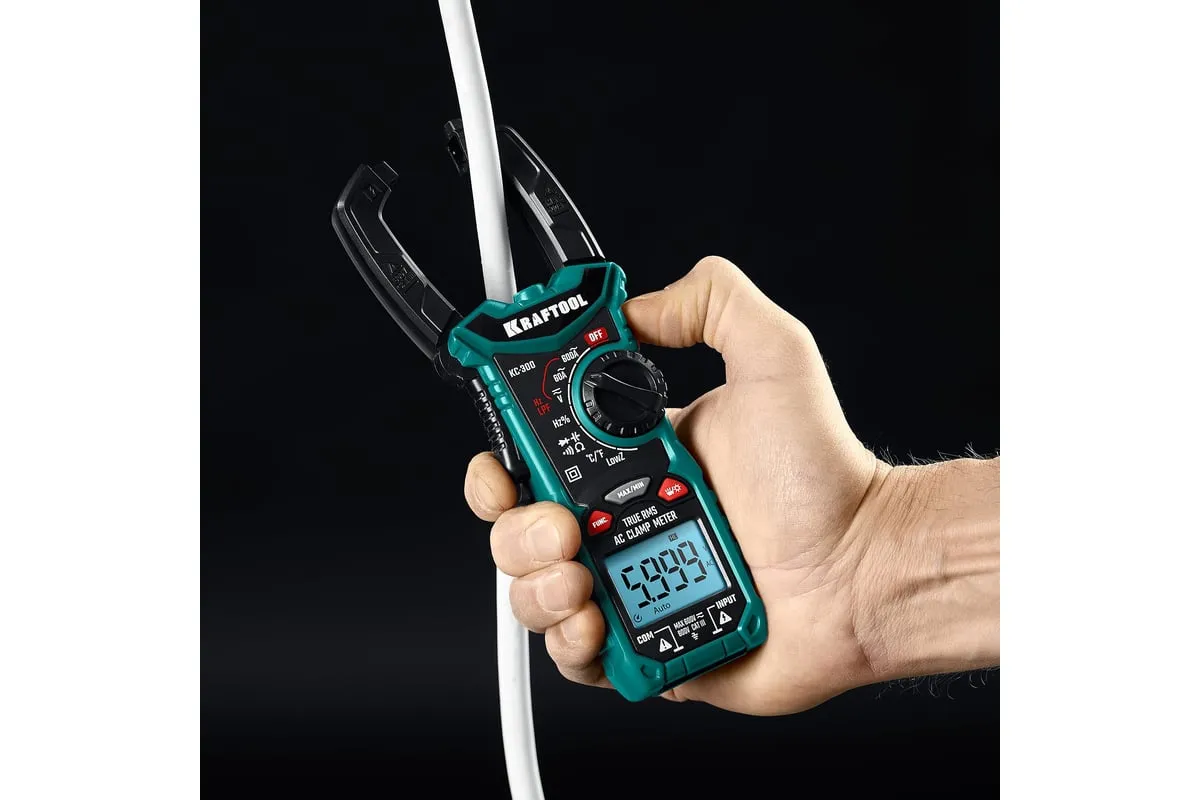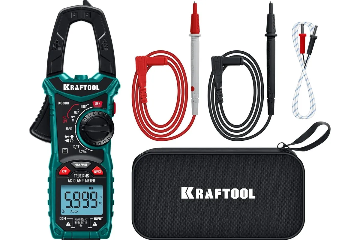 Профессиональные автоматические цифровые токовые клещи KRAFTOOL гарантируют наивысшую точность измерений. Применение высококачественных материалов обеспечивает длительный срок службы. Прибор имеет функции измерения переменного и постоянного напряжения, сопротивления, емкости, проверки целостности цепей со звуковым сигналом, проверки диодов, измерения переменного и постоянного тока, измерение частоты до 100 МГц, измерение температуры и режим поиска проводки под напряжением.