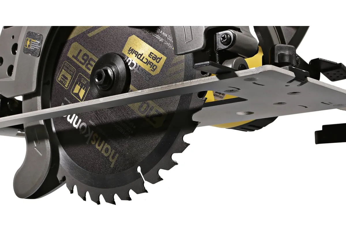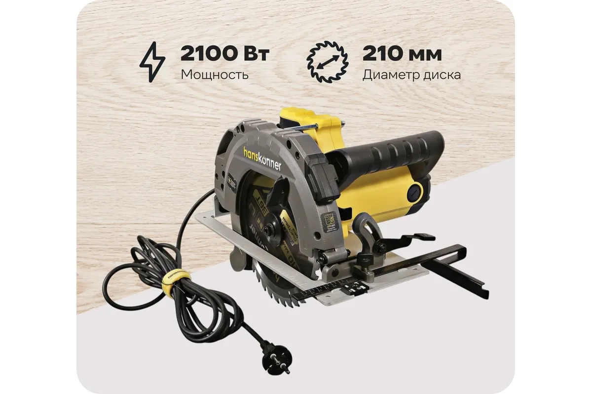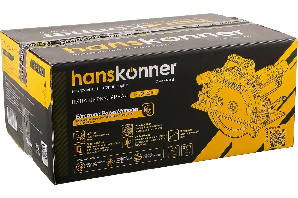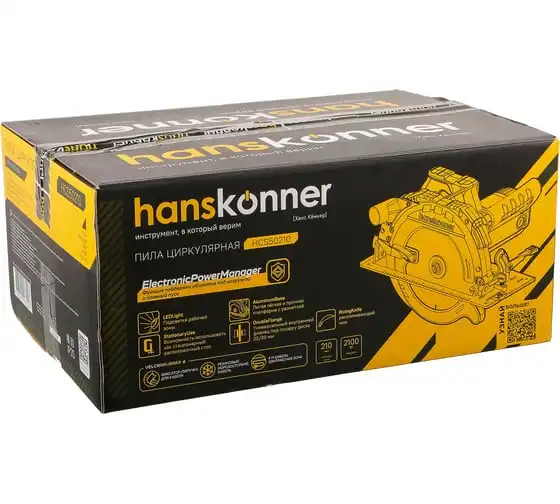 Hanskonner HCS50210 – надежная и производительная циркулярная пила под рабочий диаметр пильного диска 210 мм с возможностью стационарного крепления. Важная особенность модели Hanskonner HCS50210 – наличие блока константной электроники EPM (Electronic Power Manager), предотвращающего снижение рабочих оборотов под нагрузкой и обеспечивающего плавный запуск. Инструмент получил не склонную к деформации литую алюминиевую платформу, гарантирующую высокое качество производимого реза. Предусмотрена возможность точной настройки пилы на необходимую глубину пропила, а также возможность выполнения резов на угол от 0 до 45 градусов. Фиксация опорной платформы в требуемом наклонном положении осуществляется безыинструментальным способом – с помощью специального зажимного рычага, что значительно ускоряет и облегчает настройку перед работой. Заклинивание диска при распиловке предотвращает специальный расклинивающий нож. Для большего удобства пользователя модель имеет LED подсветку рабочей зоны, обеспечивающую отличную видимость линии реза даже при недостаточном освещении, а также функцию блокировки вала шпинделя, гарантирующую максимально быструю замену оснастки. Предусмотрена функция быстрого доступа к щеткам QuickChange, дающая возможность их быстрой замены, без демонтажа элементов корпуса. Назначение: для продольной и поперечной распиловки древесины различной твердости, а также различных листовых пиломатериалов: фанеры, ламината, ДВП, ДСП и т д.