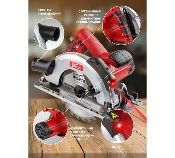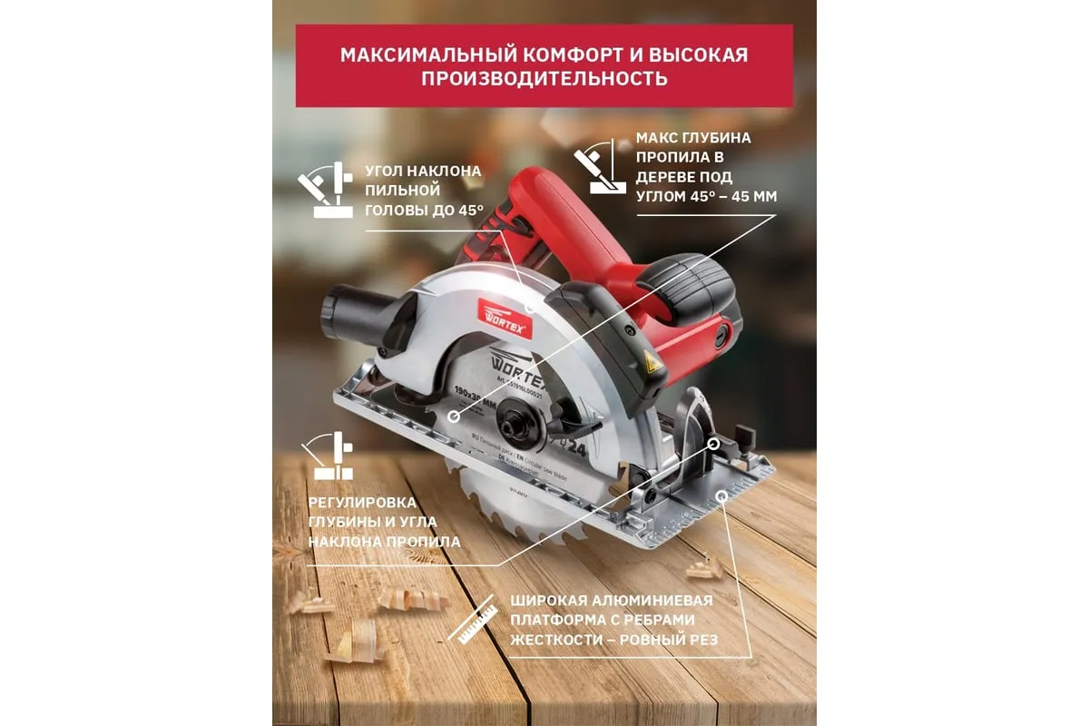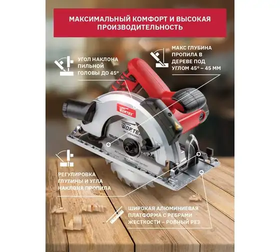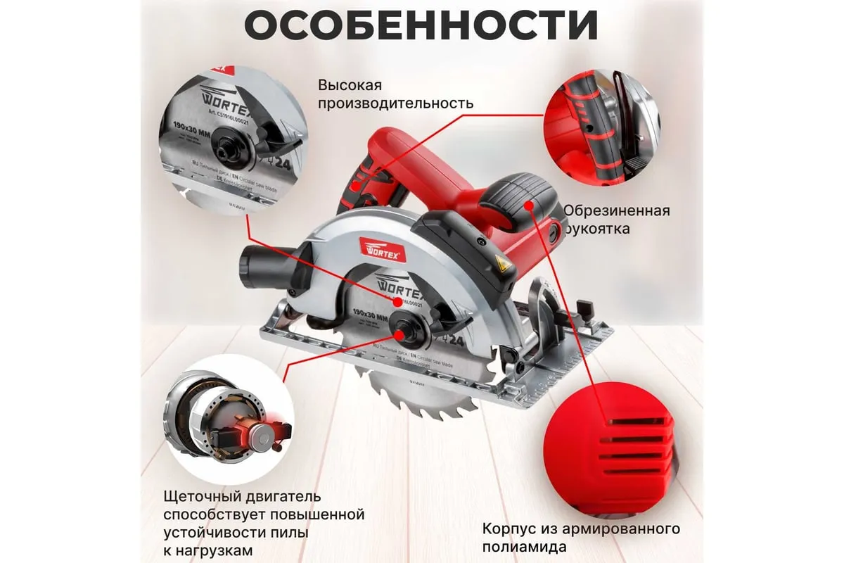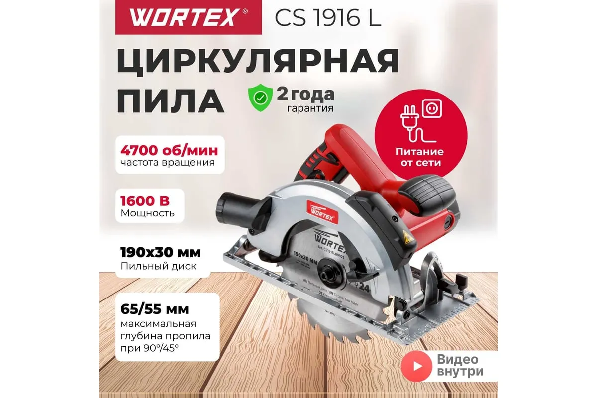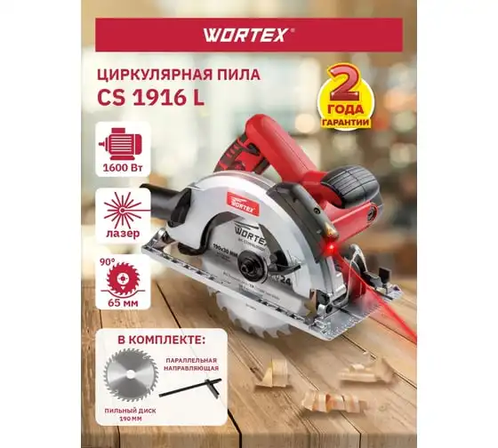 Циркулярная пила WORTEX CS 1916 L CS1916L00021 – это мощная, но при этом легкая и компактная пила подойдет для продольных и косых пропилов при максимальном уровне комфорта.