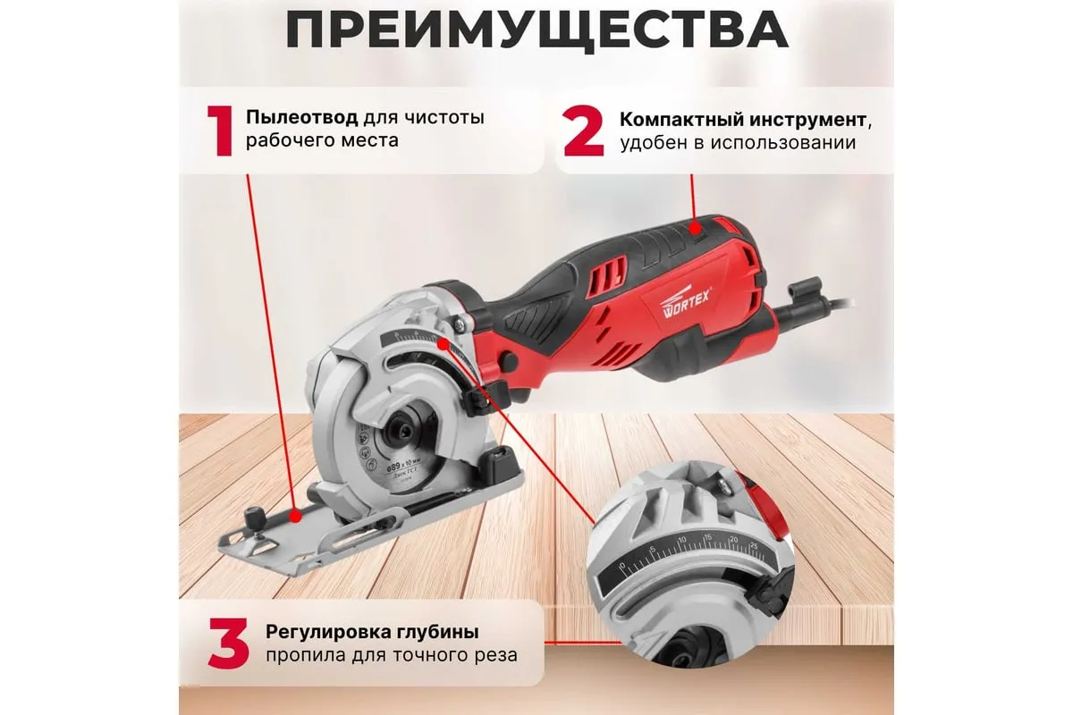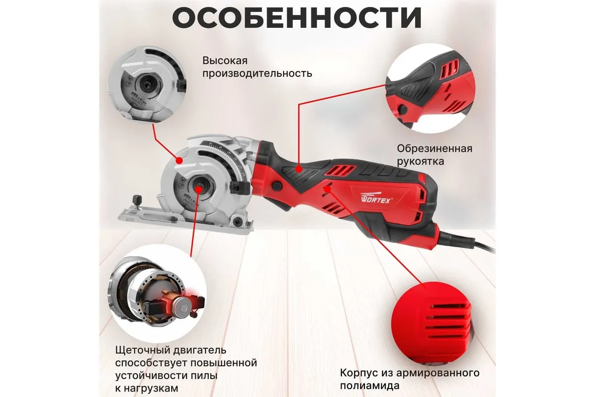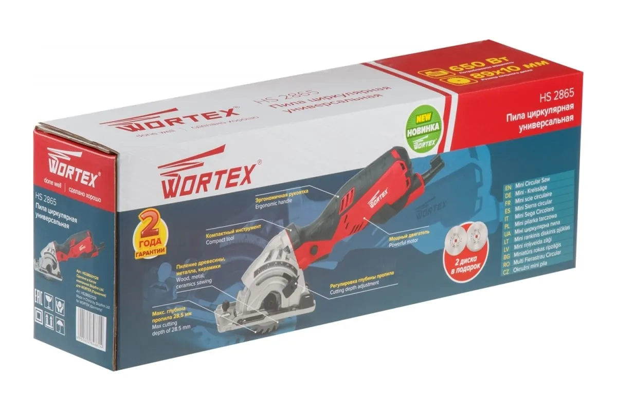 Циркулярная пила WORTEX HS 2865 HS286501126 предназначена для прямой распиловки древесины, ламинированной и паркетной доски, древесно-стружечных плит, мягких металлов, керамической плитки, натуральных и искусственных камней.