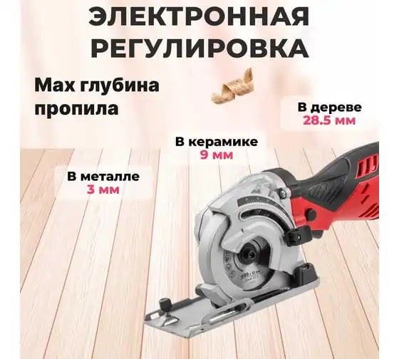 Имеет мощный двигатель, регулировку глубины пропила, эргономичную рукоятку.