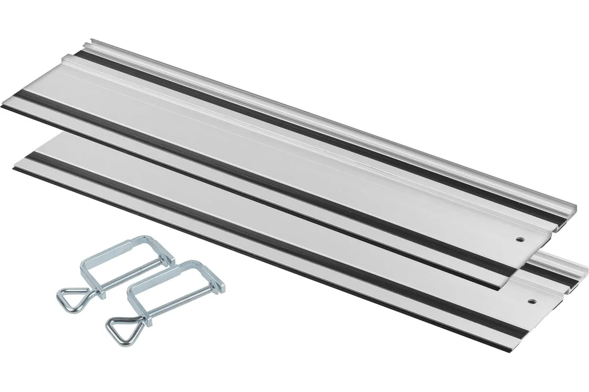 Поставляется в комплекте с двумя направляющими шинами 0.7 м и двумя винтовыми струбцинами.