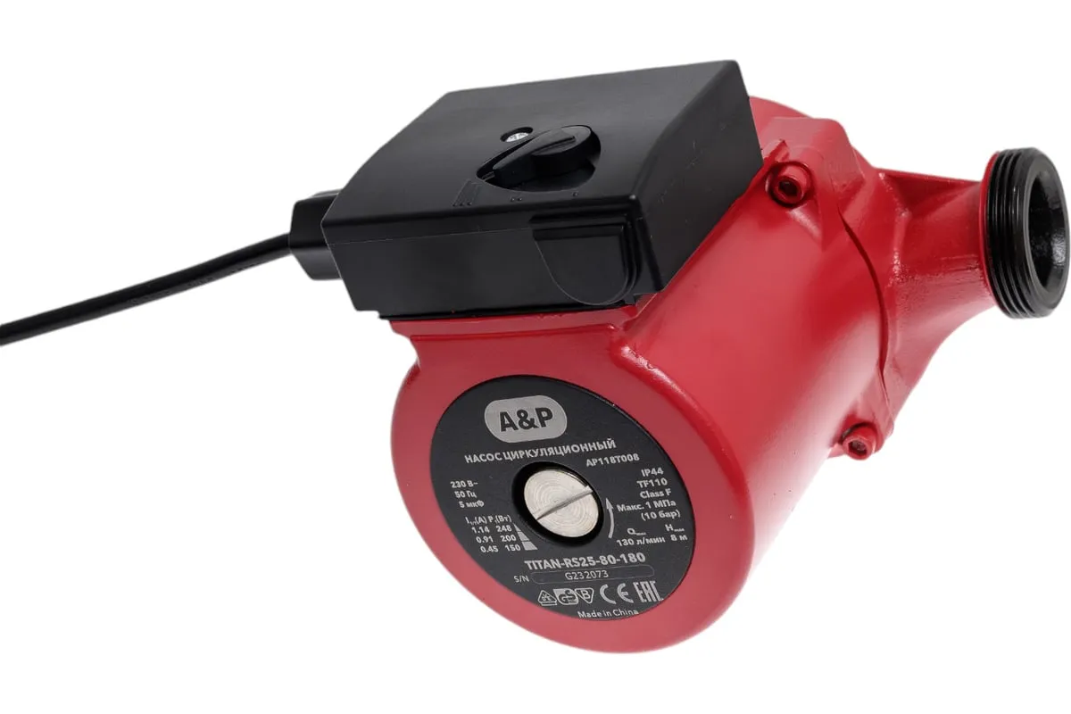 Циркуляционный насос A&P серии TITAN, обеспечивающий принудительную циркуляцию теплоносителя. Наличие 3 скоростей позволяет выбрать оптимальный режим работы насоса.