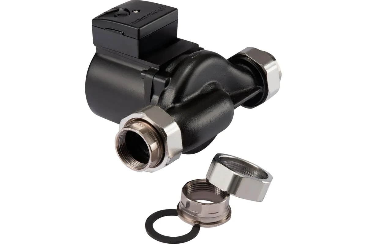 Присоединительный размер гаек — 1¼ дюйм (32 мм). Максимальный напор достигает 8 метров водяного столба, а расход теплоносителя доходит до 110 л/мин.