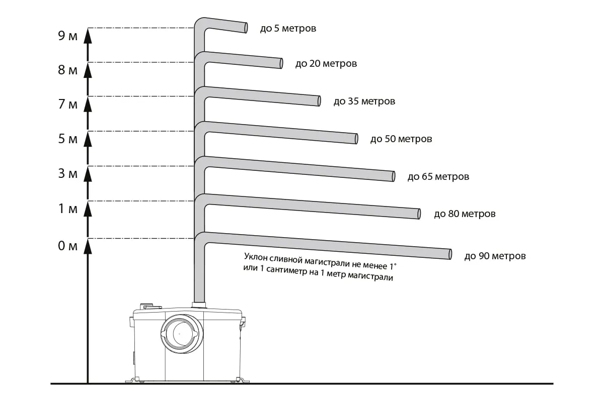 Туалетный насос-измельчитель JEMIX STP-100 LUX 600 Вт 87610 используется в квартирах и частных домах для откачивания сточных вод и фекалий до канализации, с возможностью одновременного подключения унитаза, раковины, душа и подъема стоков на высоту до 9 метров.