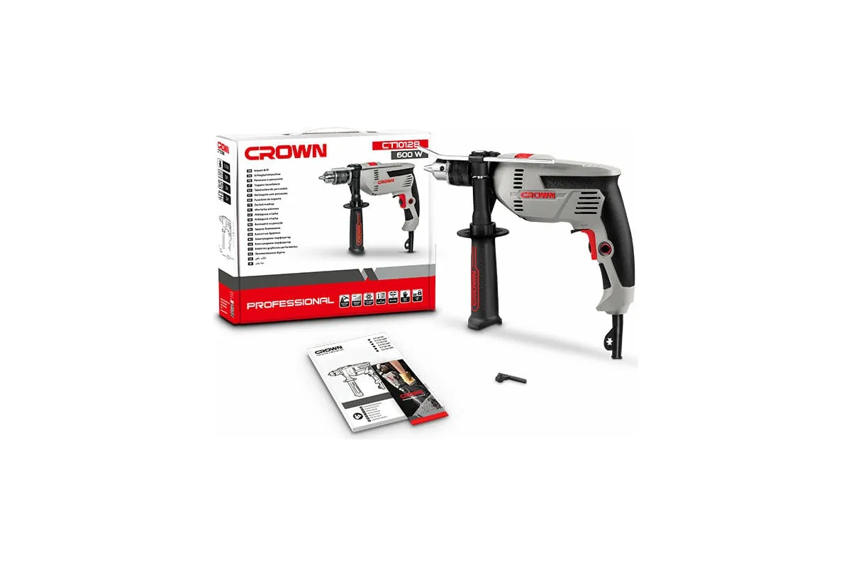 Ударная дрель CROWN CT10129 используется при ремонтных и строительных работах для сверления отверстий.