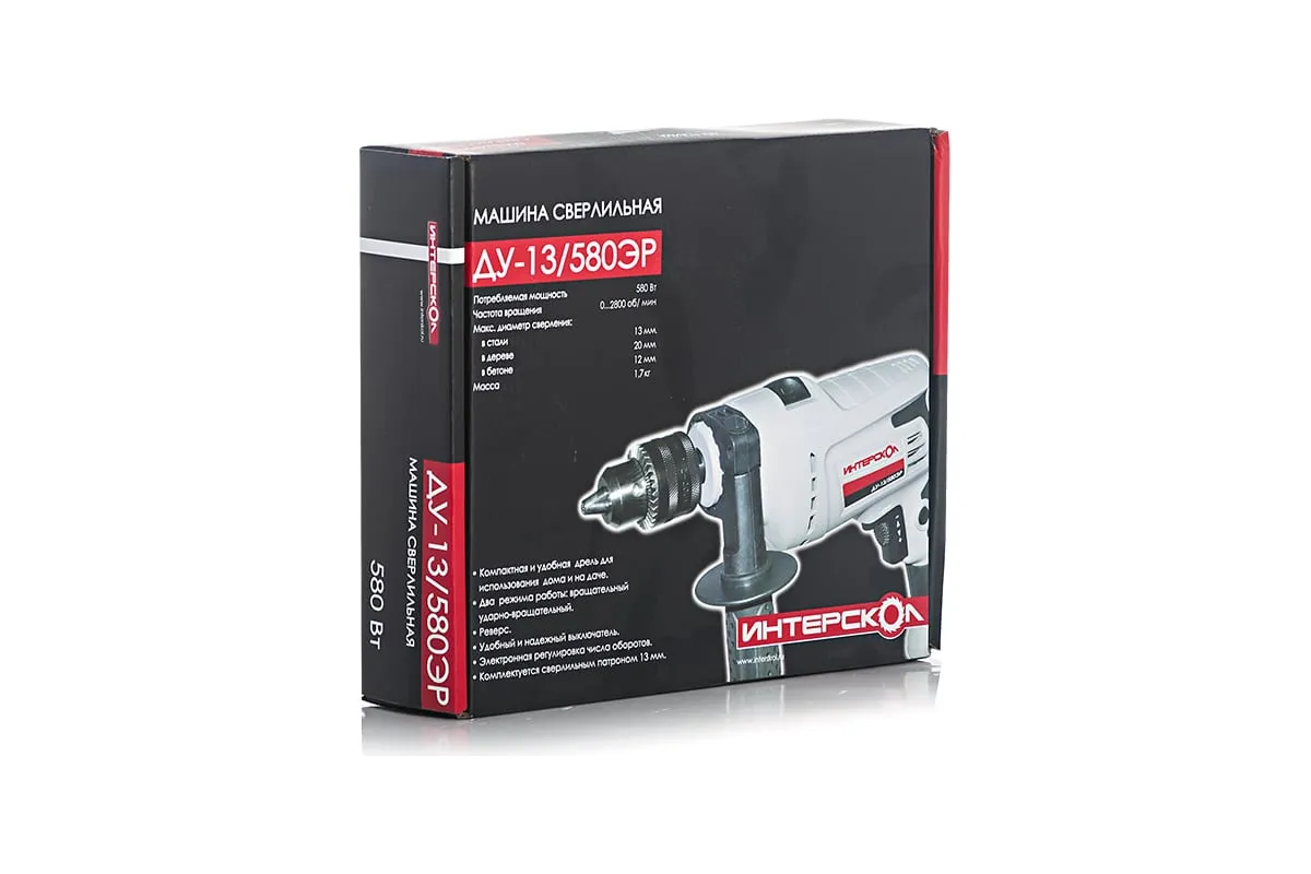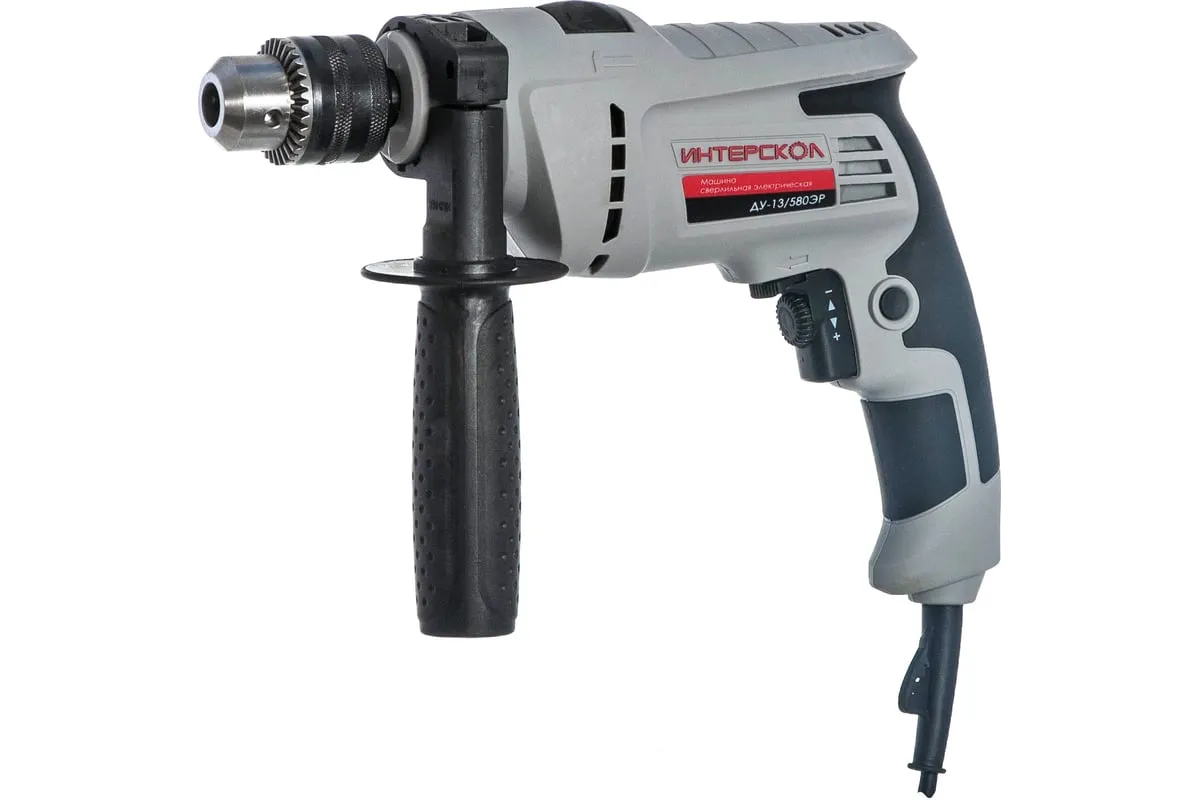 Ударная дрель Интерскол ДУ-580 ЭР - бытовой инструмент со стандартным набором возможностей.