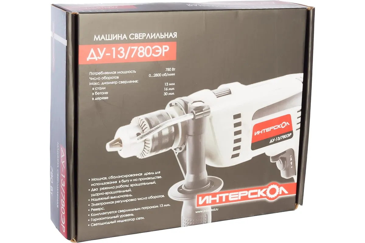 Ударная дрель Интерскол ДУ-13/780ЭР 421.1.0.00 оснащена мощным двигателем, что обеспечивает высокую производительность. Она предназначена для бурения отверстий в таких материалах, как кирпич, плитка, керамика. Дополнительная рукоятка способствует надежному удержанию инструмента.