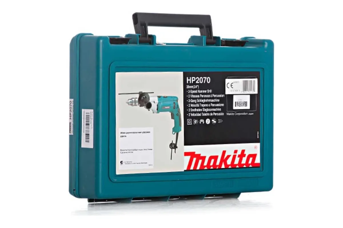Ударная дрель Makita HP 2070 – это небольшой инструмент с узким корпусом. Она обладает высокой мощностью с возможностью регулировки количества оборотов. Функция реверса дает возможность использовать инструмент как шуруповерт. Дрель оснащена расцепляющей муфтой, которая при заклинивании бура остановит вращение во избежании поломки инструмента и получения оператором травмы.
