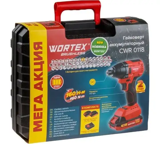 WORTEX CWR 0118 ALL1 (0329286) имеет бесщеточный двигатель, что способствует повышенной устойчивости к нагрузкам, обеспечивает легкость инструмента, простоту в его обслуживании. Для точности в работе гайковерт оснащен панелью регулировки крутящего момента. Удобству пользователя способствует подсветка, обрезиненная рукоятка.