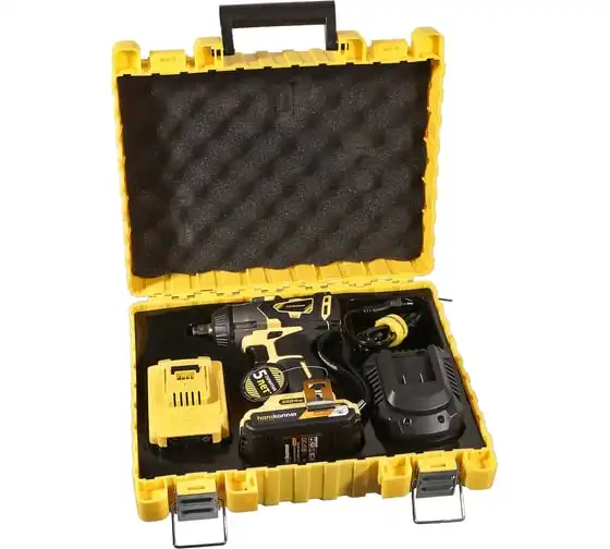 Выгодная универсальная модель с бесщеточным двигателем подходит для решения практически любых задач по завинчиванию и откручиванию резьбового крепежа. Высокий в своем классе крутящий момент, в 350 Нм, поможет выполнению сложных задач и обеспечит высокую производительность при работе с резьбовыми крепежными соединениями. Трехступенчатая регулировка частоты ударов и трехуровневый выбор скорости вращения позволяет оптимально подобрать параметры нагрузки под конкретный материал или крепеж для его бережного и качественного завинчивания. Компактная конструкция с головкой минимального размера позволит уверенно работать в условиях ограниченного пространства, обеспечивая комфорт и безопасность. Интегрированная микросхема двигателя регулирует потребление энергии, чтобы оптимизировать работу двигателя и сохранить заряд аккумулятора.Два Li-Ion аккумулятора на 2.4 Ah с ресурсом до 3000 зарядок обеспечат полную непрерывность в работе. Модель оснащена батарей нового поколения с повышенным ресурсом, увеличенной энергоотдачей, пониженным саморазрядом и минимальным временем зарядки. Информативный индикатор заряда для уверенной работы и сохранения аккумуляторов от полного разряда. Быстрое зарядное устройство восстановит полный заряд всего за 60 минут или за 35 минут до 80%. Долговечность аккумулятора обеспечено собственной BMS-системой защиты от перегрузки, перегрева и глубокого разряда.