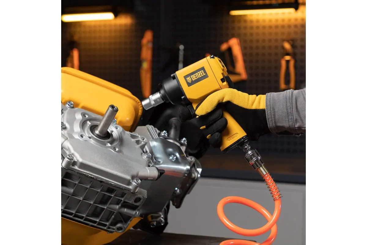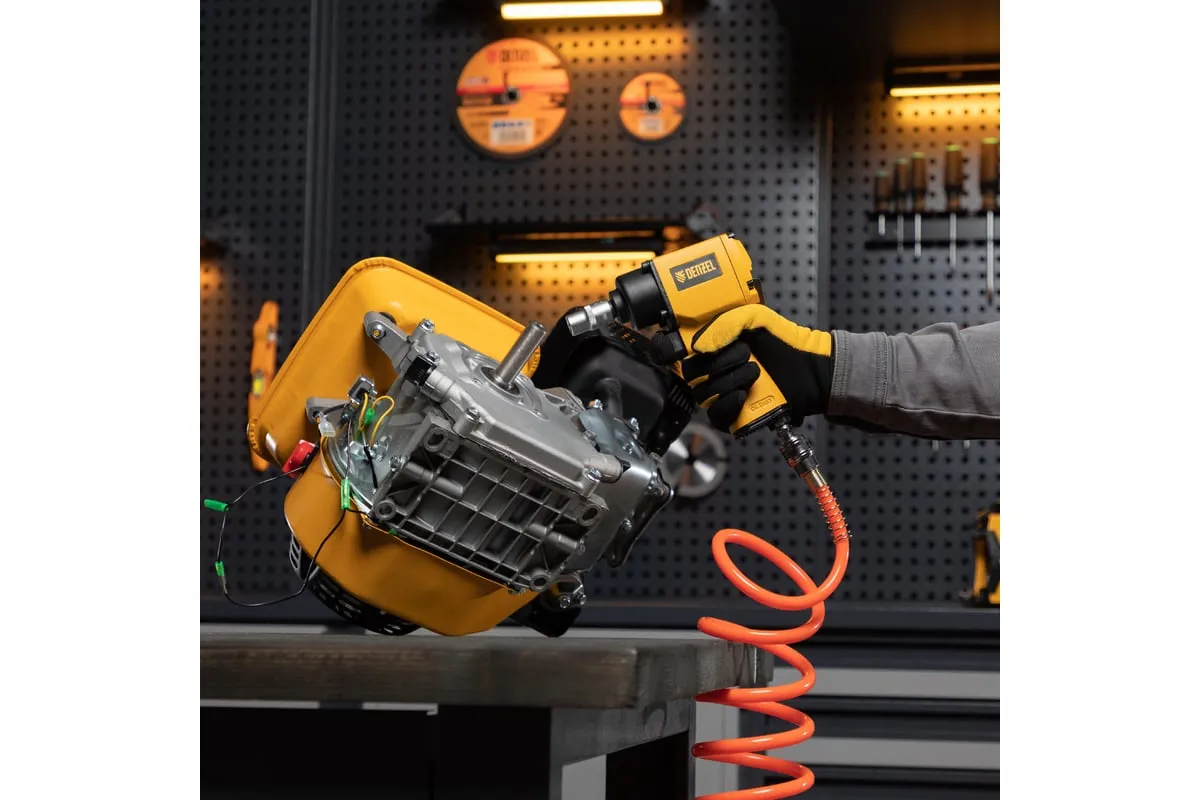 Пневмодвигатель может работать без перерывов, поэтому инструмент подходит для автомастерских и сборочных цехов.