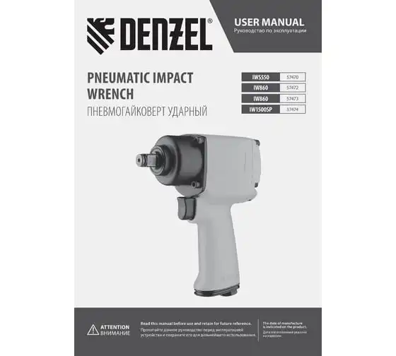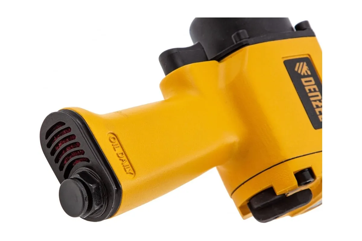 Во время работы не забывайте использовать специальное масло ISO 46, которое можно добавлять как напрямую в инструмент, так и с помощью блока подготовки воздуха Denzel 57469, включающего в себя лубрикатор для автоматической подачи масла.
