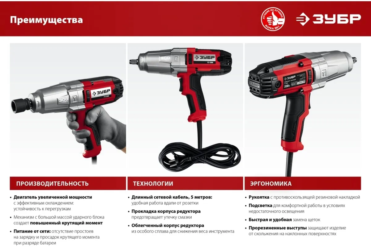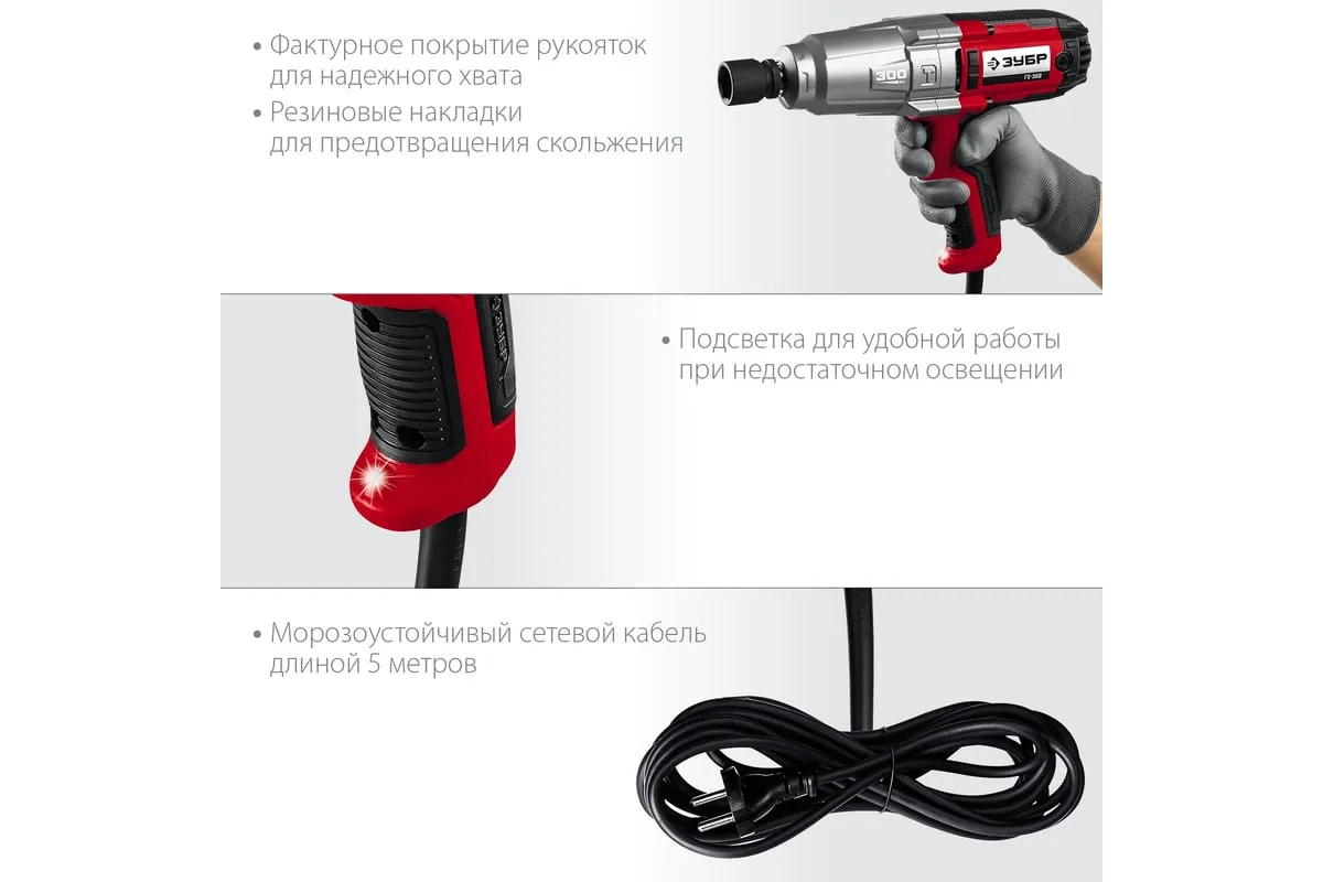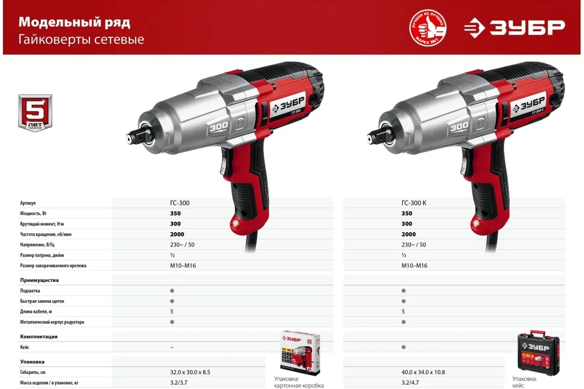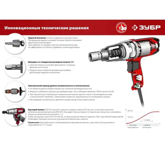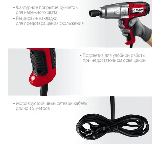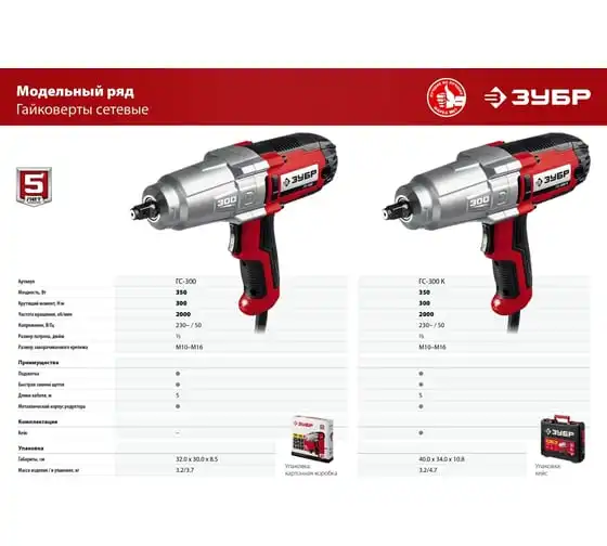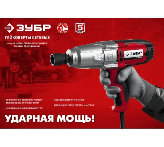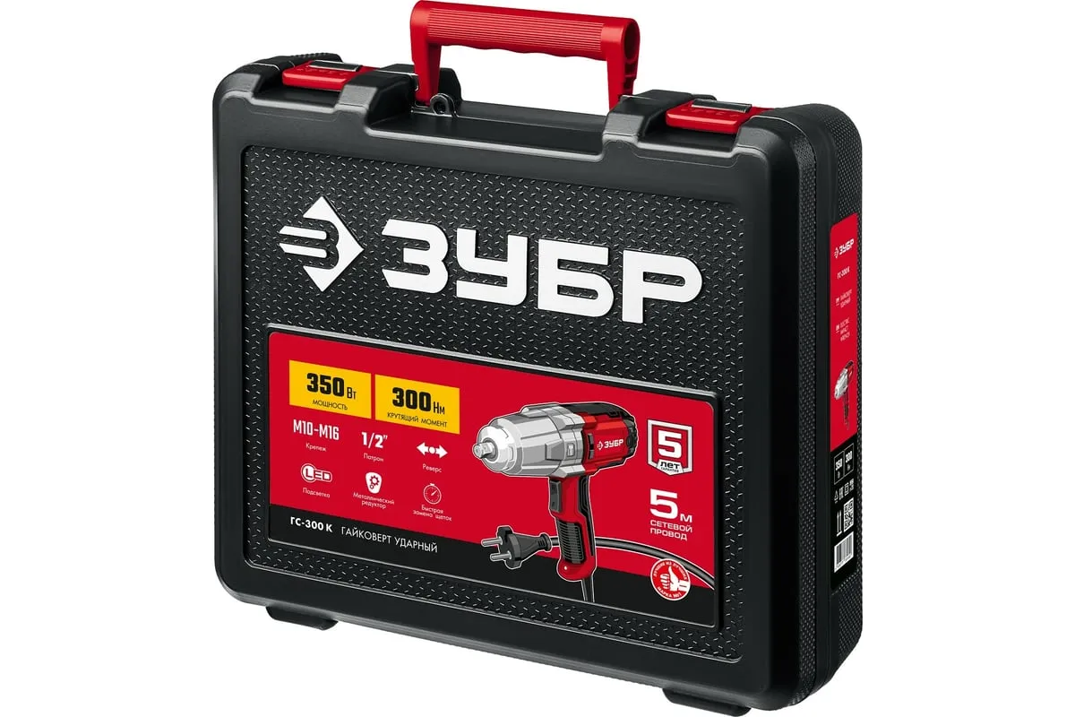 Ударный сетевой гайковерт ЗУБР ГС-300 К предназначен для закручивания и откручивания болтов и гаек. Используется при сборке и разборке металлических конструкций, снятии и установке колес автомобиля и т.д. Металлический корпус редуктора и высокий крутящий момент 300 Нм позволяют использовать гайковерт для самых тяжелых работ. Ударная функция обеспечиваетудобную работу с крепежомбольшого диаметра и заржавевшей резьбой. Длинный сетевой кабель 5 м дает возможностьсвободно перемещатьсяи работать далеко от розетки. Для надежного храненияи транспортировки инструмент поставляется в кейсе.