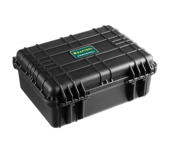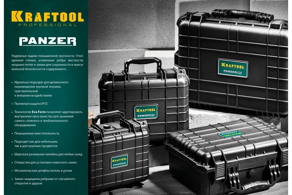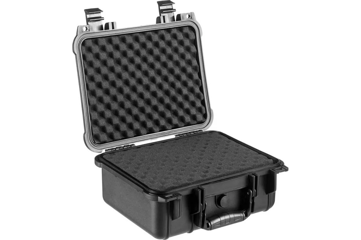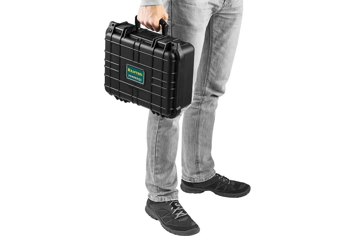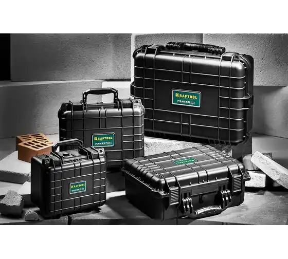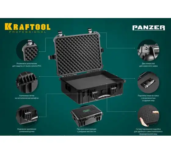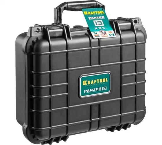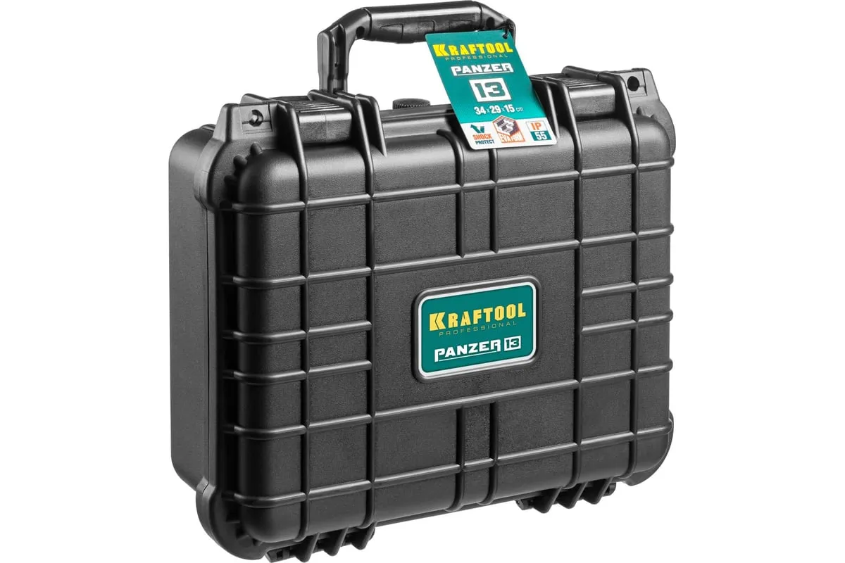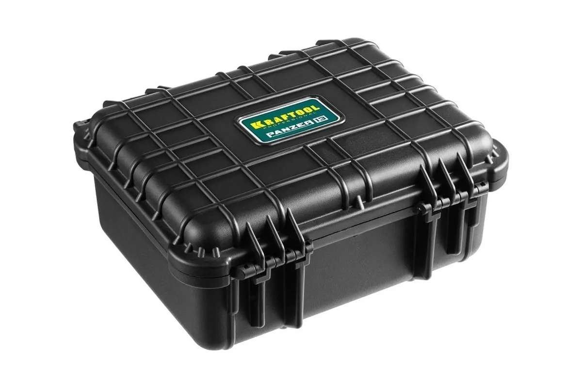 Ударопрочный ящик KRAFTOOL Panzer пластиковый, степень защиты IP55, 13", 38251-13 применяется для хранения инструментов и принадлежностей. Утолщенные стенки, усиленные ребра жесткости, мощные петли и замки для сохранности и максимальной безопасности содержимого. В комплекте пенопоропласт для создания формы под хранимый предмет.