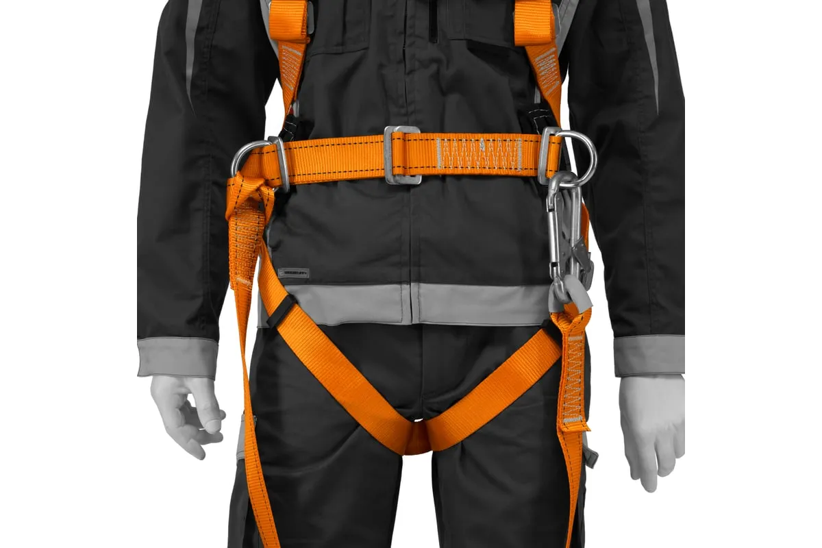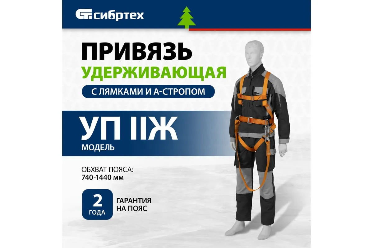 Удерживающая привязь УП IIЖ Сибртех 89504 с наплечными, набедренными лямками и А-стропом из синтетической ленты подходит для использования при большинстве высотных работ. Позиционирует и надежно удерживает пользователя, обеспечивая безопасность проведения работ.