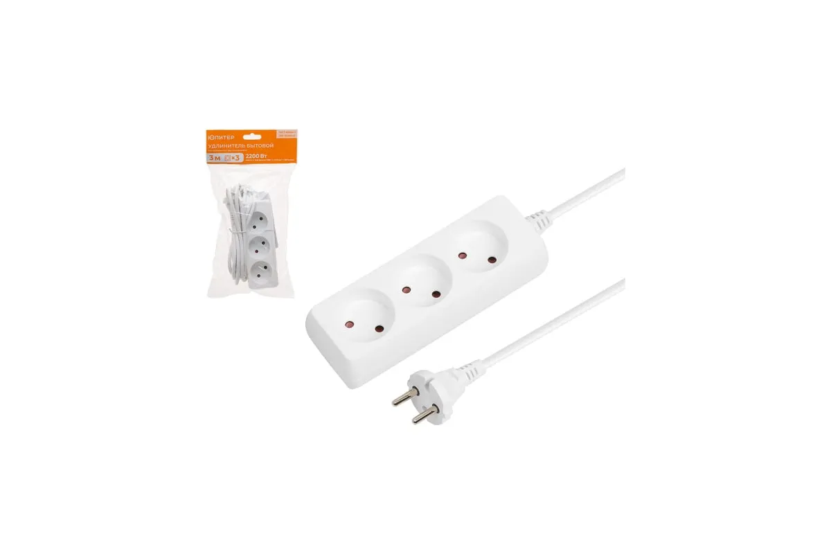 Удлинитель ЮПИТЕР 3 м 3 розетки 2,2 кВт JP8101-23 оснащен латунной контактной группой для устойчивого электрического контакта между вилкой и розеткой. Защитные шторки открываются нажатием только на две одновременно, что обеспечивает надежную защиту от случайного прикосновения к токоведущим частям (защита детей). Провод из чистой меди и контроль производства гарантируют реальное сечение провода и работоспособность удлинителя при подключении нагрузки до 2200Вт. Присоединение проводов выполнено методом точечной сварки, в отличие от присоединения проводов винтовыми зажимами, благодаря чему исключается возможность ослабления контактов в течение всего срока службы удлинителя. Изготовлен из качественных материалов в соответствии с ГОСТ60884-1 и предназначен для подключения бытовых электрических приборов к электрической сети переменного тока внутри помещения. Сила тока - 10А.