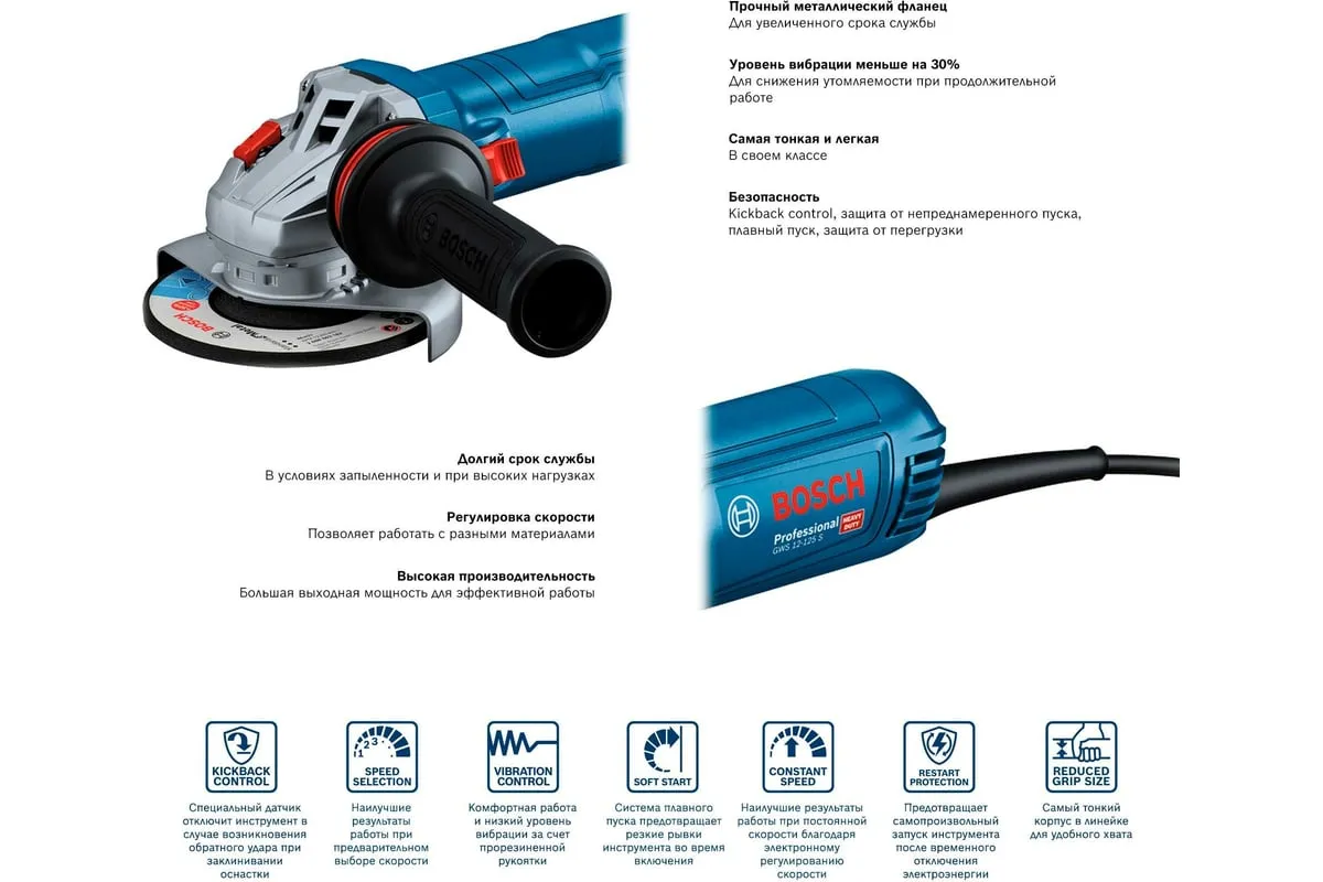 Углошлифовальная машина Bosch GWS 12-125 S 06013A6020 - универсальный инструмент для шлифования или резки металла. Удобство использования обеспечивается благодаря тонкой рукоятке, компактному размеру и небольшому весу.
