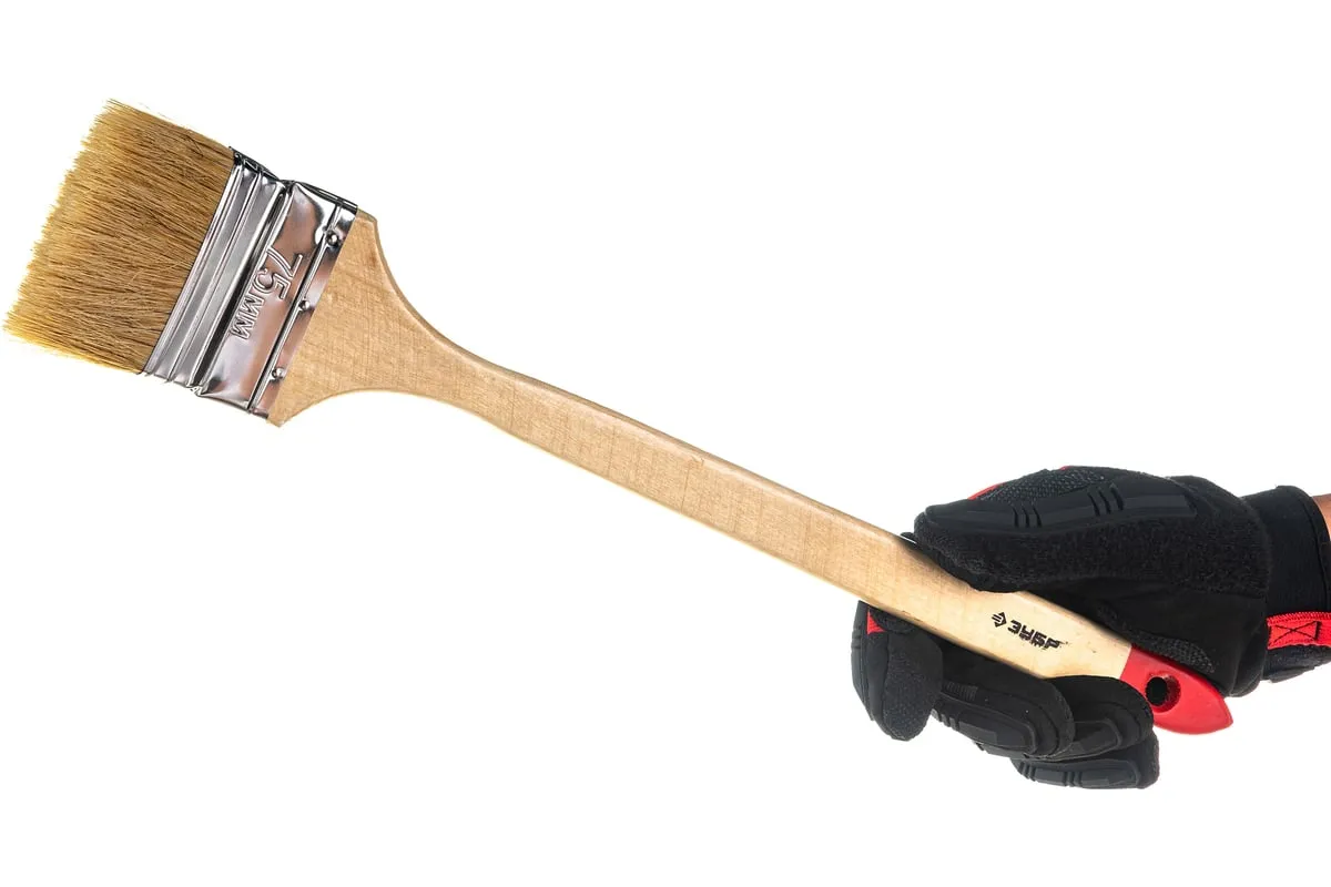 Угловая кисть ЗУБР УНИВЕРСАЛ-МАСТЕР 01041-075 используется при нанесении лакокрасочных материалов в труднодоступных местах, например за батареями отопления. Металлический бандаж прочно соединяет рабочую часть инструмента с деревянной рукояткой, что обеспечивает продолжительную эксплуатацию кисти.