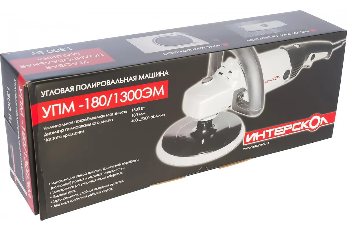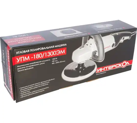 Угловая полировальная машина Интерскол УПМ-180/1300ЭМ 180.1.1.00 сконструирована для обработки деревянных и металлических поверхностей. Область применения - выполнения полировальных операций. Благодаря регулировке рабочей скорости, инструмент можно использовать для работы с различными поверхностями, такими как деревянные, металлические, лакокрасочные и полимерные.