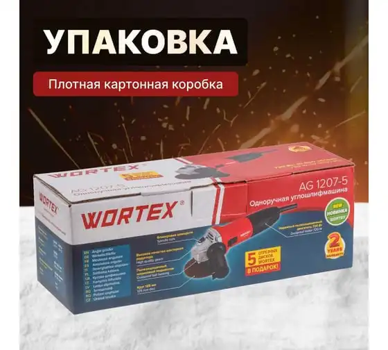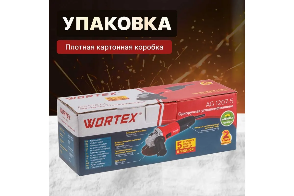 WORTEX AG 1207-5 (0333292) оснащена надежным пылезащищенным двигателем, что значительно продлевает срок ее службы и защищает от воздейтвия абразивной пыли. Высокое качество шестерней редуктора и пылезащищенный шариковый подшипник обеспечат высокую производительность и значительно увеличат срок эксплуатации инструмента.