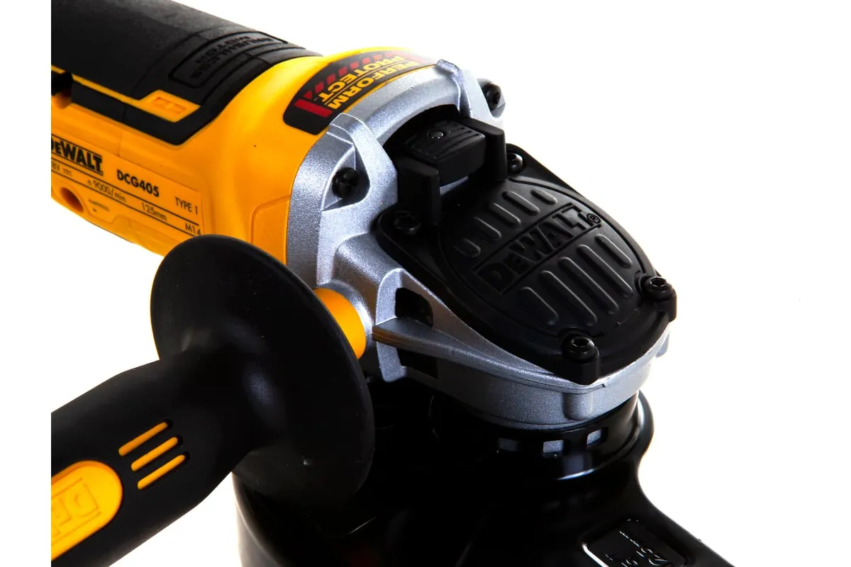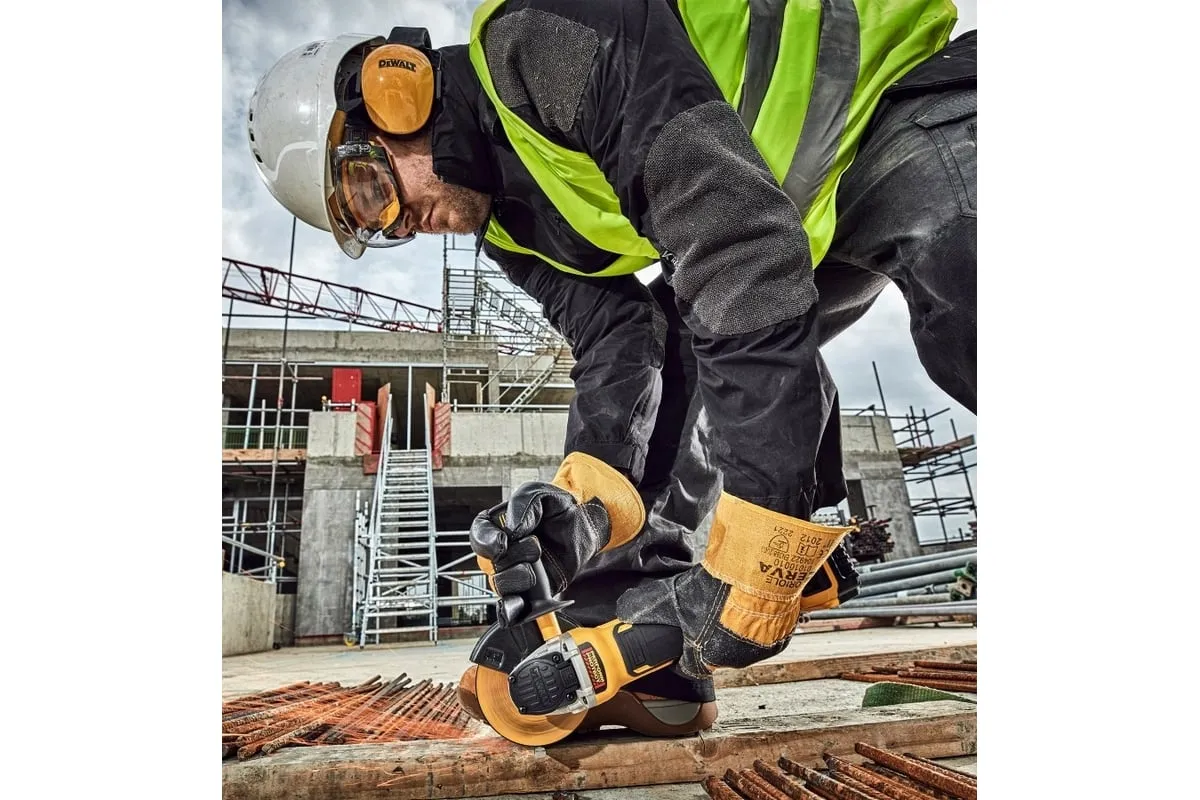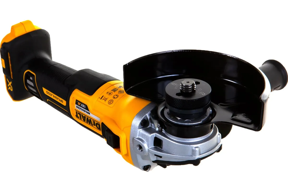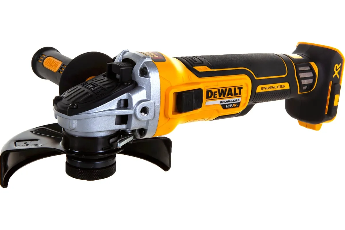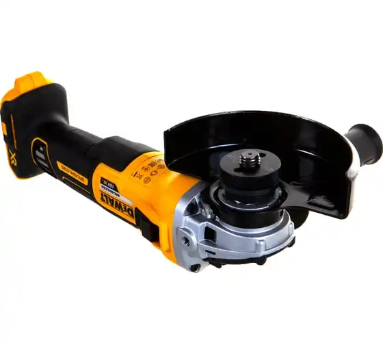 Угловая шлифмашина DEWALT 18В XR DCG405N используется при зачистных и отрезных работах. Источником питания является литий-ионный аккумулятор 18 В.