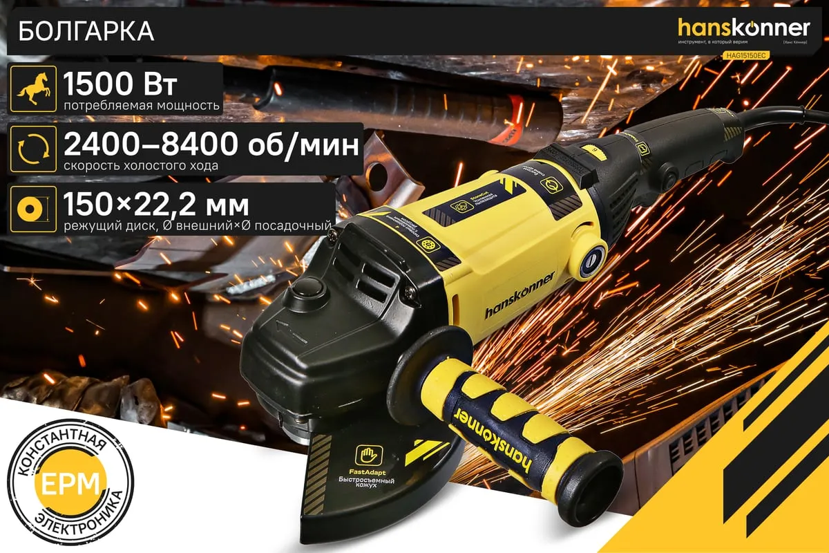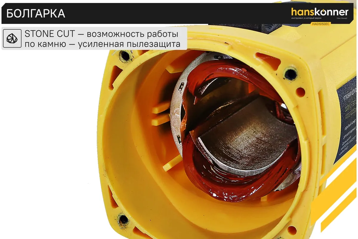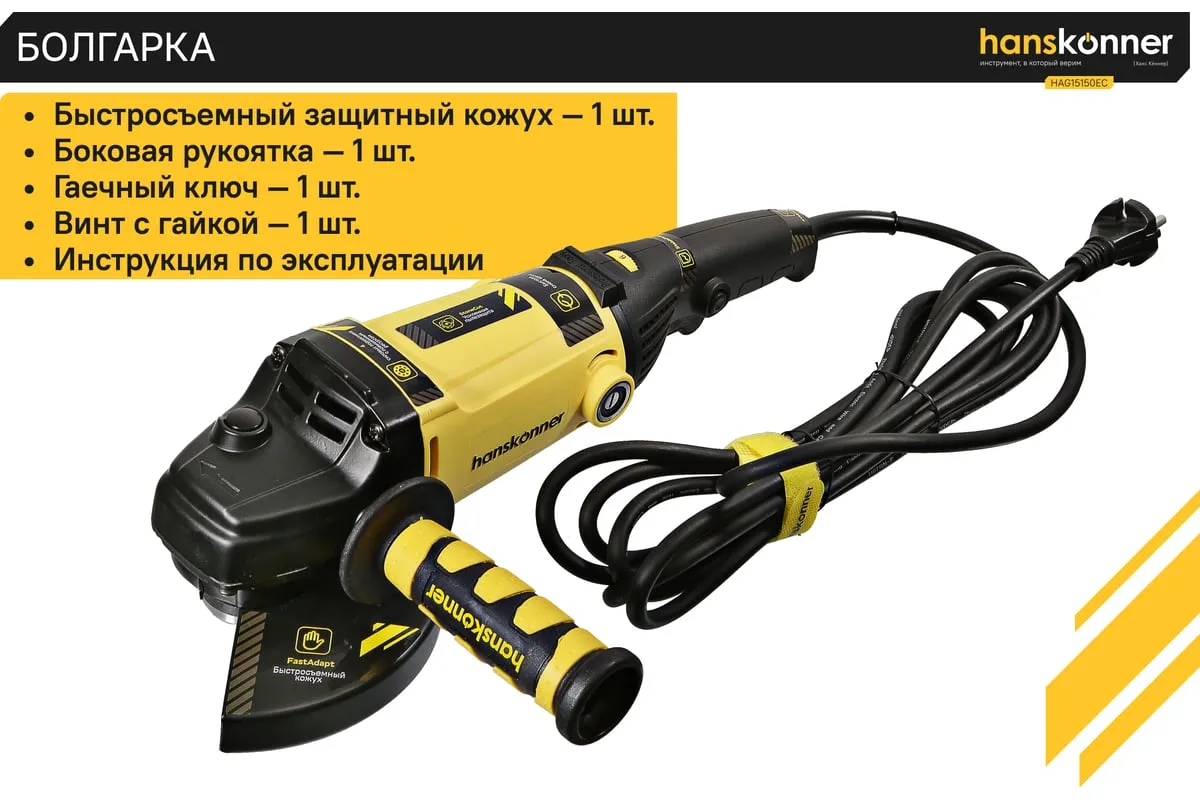 Угловая шлифмашина Hanskonner HAG15150EC применяется в строительстве и ремонте для выполнения отрезных и шлифовальных работ. Система блокировки шпинделя значительноупрощает процесс смены рабочих насадоки делает его более безопасным. Для поддержания заданного количества оборотов даже под нагрузкой, даннаямодель снабжена электронной системой стабилизации. Благодаря четырехметровому кабелю,можно работать на расстоянии от розеткии не заботиться об использовании удлинителя.