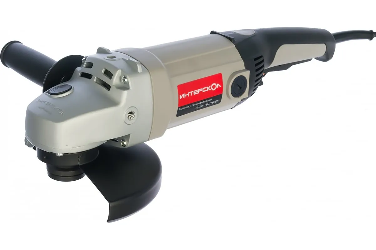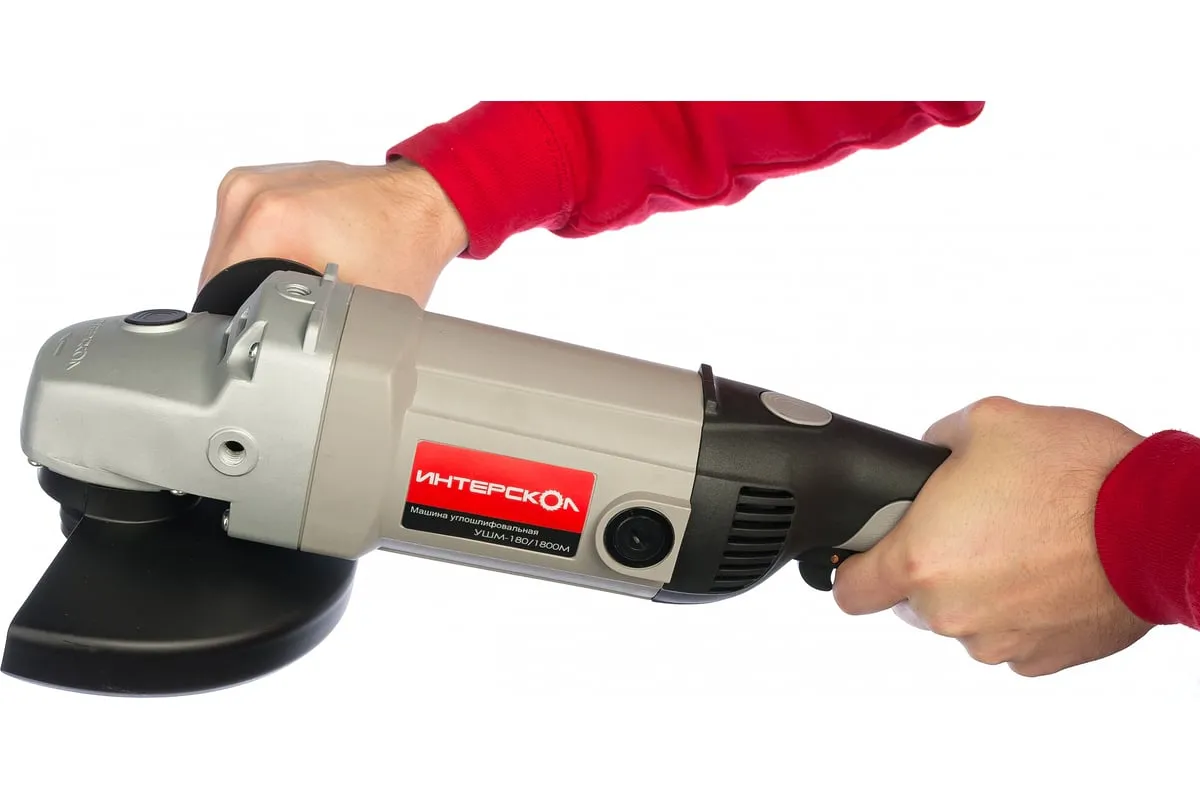 Угловая шлифмашина Интерскол УШМ 180/1800 М применяется для резки и шлифовки бетона, камня и металла дисками диаметром не больше 180 мм. Инструмент оснащен поворотной основной рукояткой и трехпозиционной боковой рукояткой. Редуктор надежно защищен от пыли