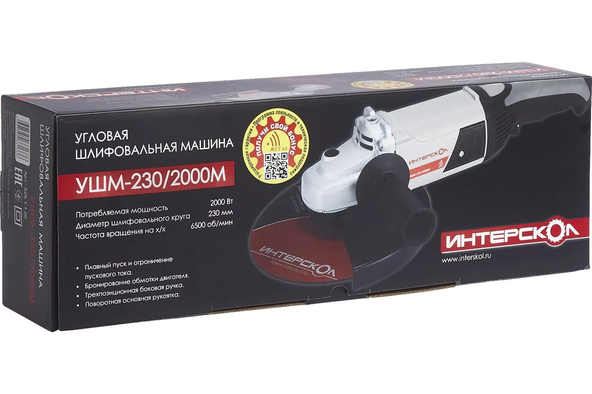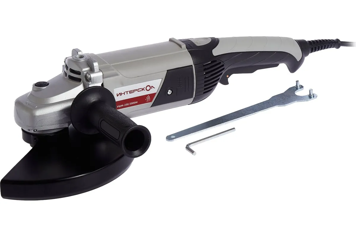 Угловая шлифмашина Интерскол УШМ-230/2000М 626.1.1.00 рассчитана на работу с оснасткой диаметром 230 мм. Компактный и мощный двигатель обеспечивает наилегчайший вес в своем классе, при номинальной нагрузке может работать, не требуя перерывов на охлаждение.