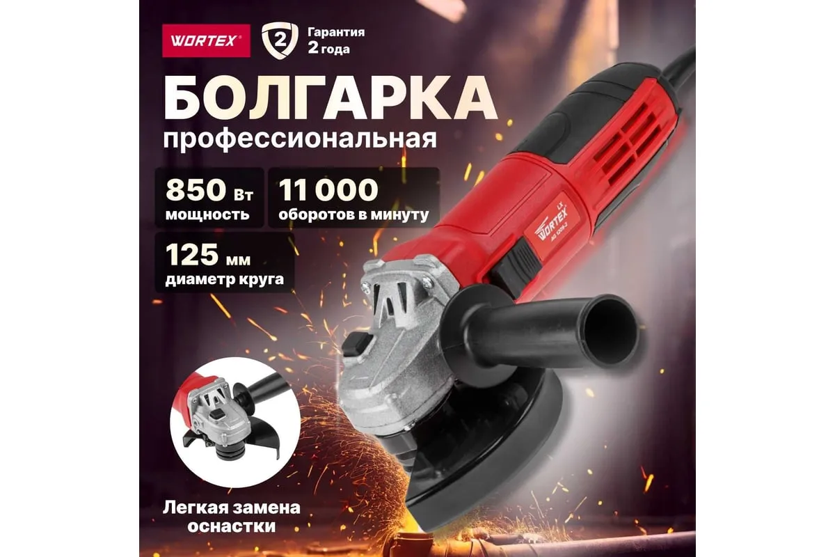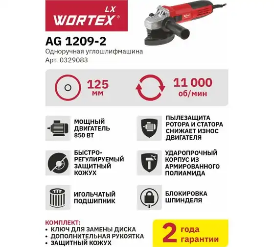 Угловая шлифмашина WORTEX 0329083 используется для шлифовки, резки и очистки различных поверхностей.