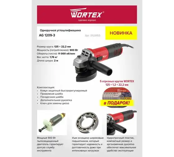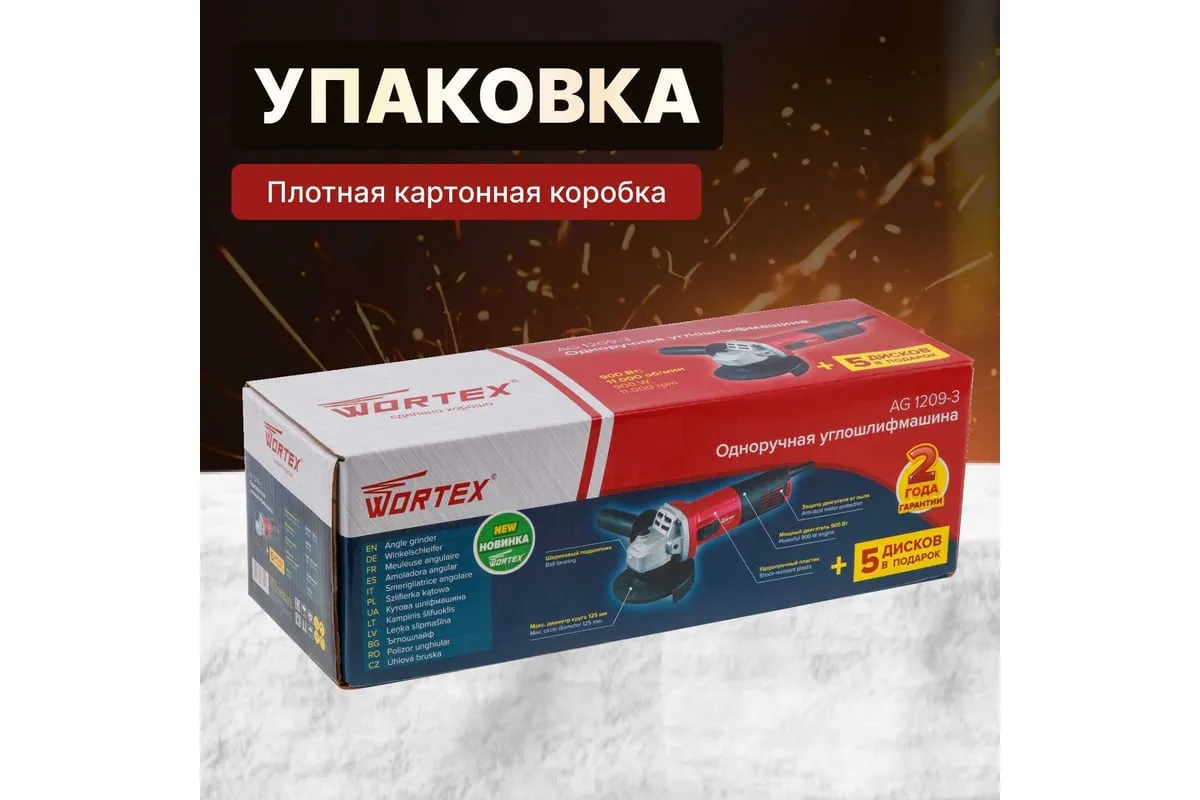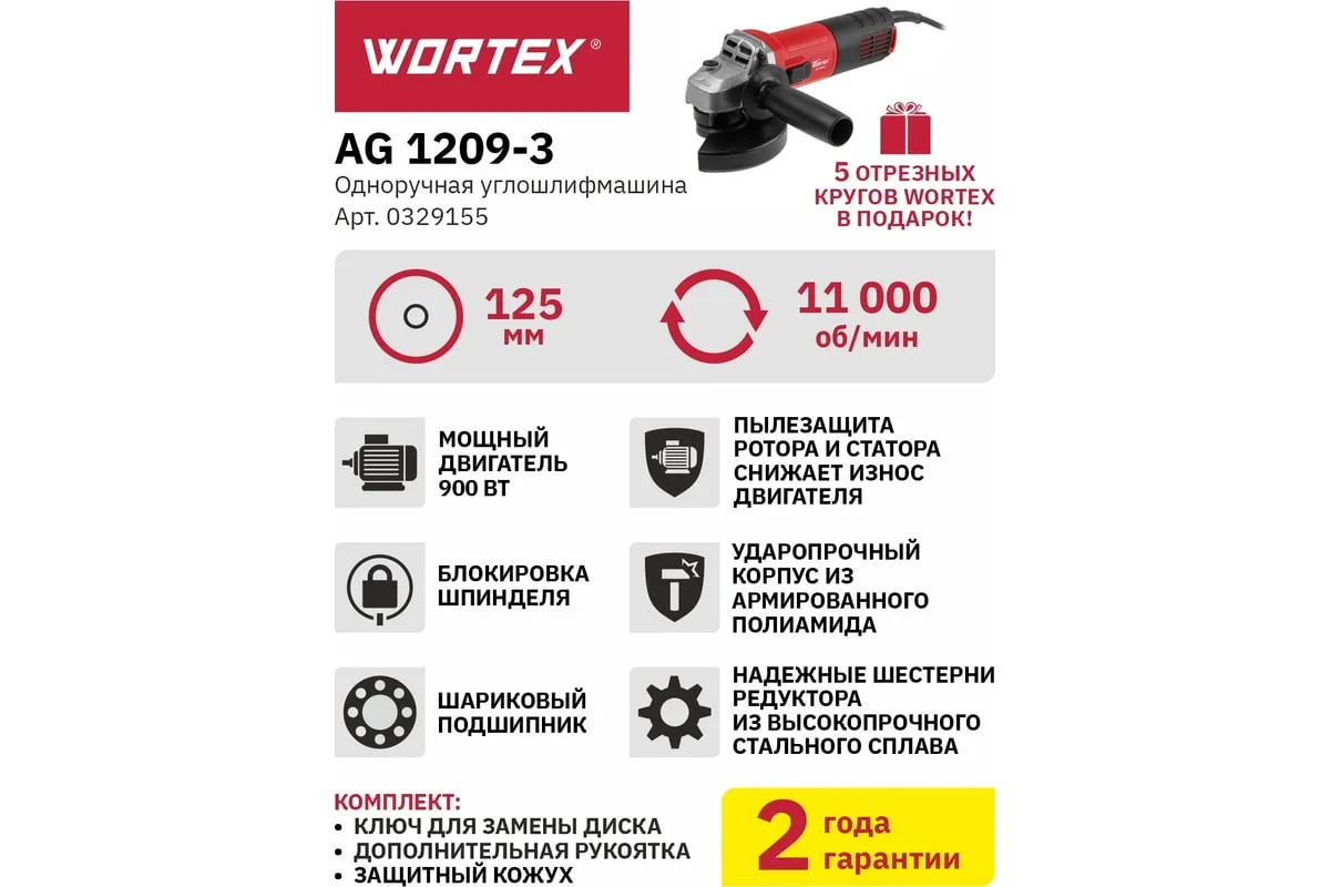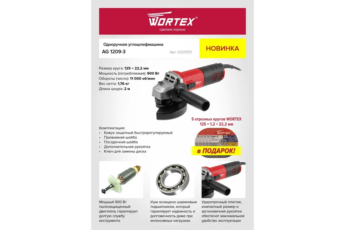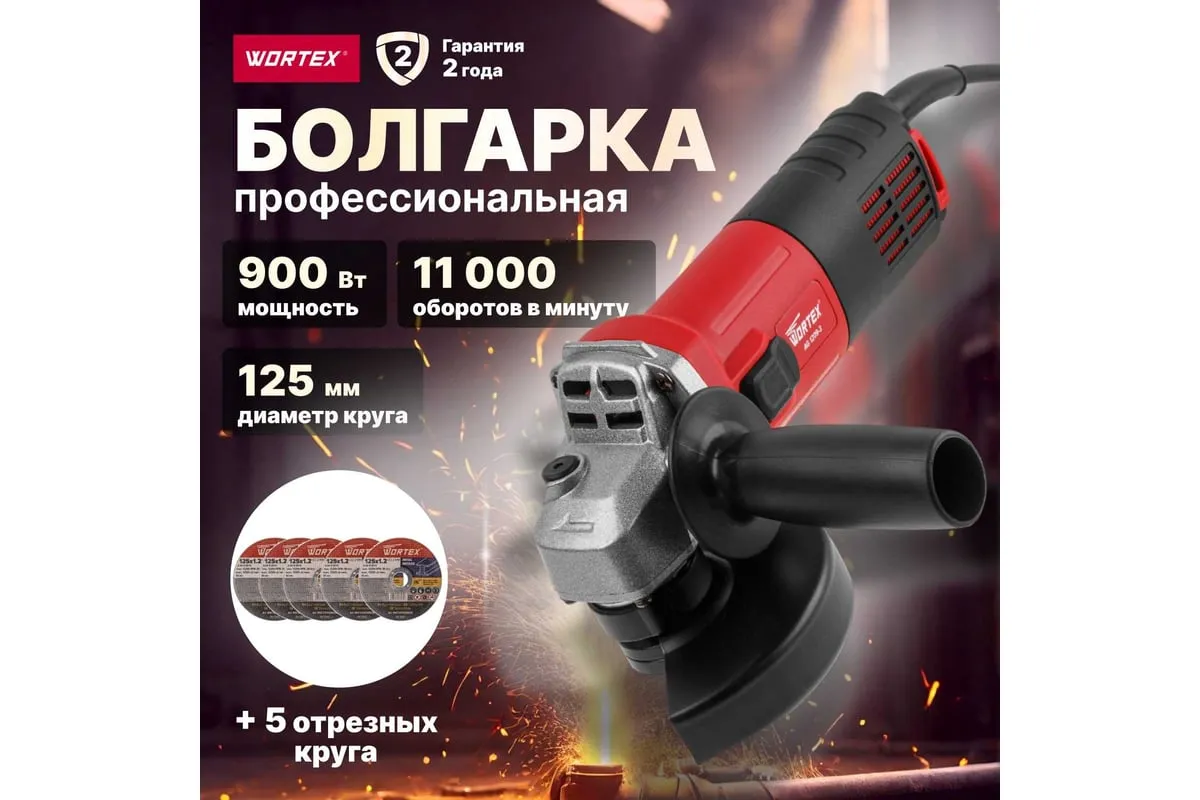 Угловая шлифмашина WORTEX AG 1209-3 0329155 имеет мощный 900 Вт, пылезащищенный двигатель, что гарантирует долгую службу инструмента.