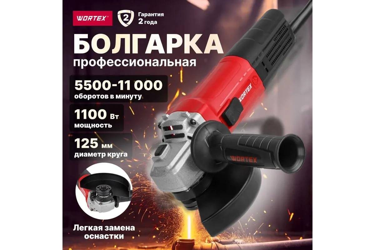 Болгарка с регулировкой оборотов WORTEX LX AG 1211-2 (1329369) предназначена для сухого шлифования и резки металла и камня. При применении соответствующих насадок угловая шлифовальная машинка может также применяться для щеточной обработки.