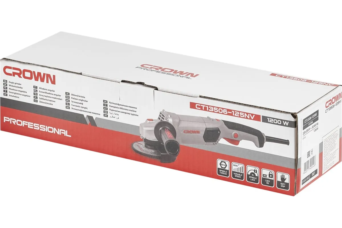 Болгарка CROWN CT13506-125NV имеет высокую производительность за счет двигателя мощностью 1200Вт