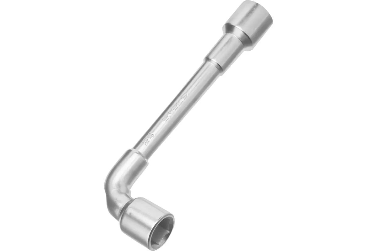 Угловой проходной ключ 24 мм STELS 14241 — профессиональный инструмент для работы со шпильками размером 24 мм и другими длинными резьбовыми элементами. Ключ целиком закален, может выдерживать предельные нагрузки. Хромированное покрытие обеспечивает стойкую защиту от коррозии и увеличивает износоустойчивость. Изделие подходит для работ в труднодоступных местах.