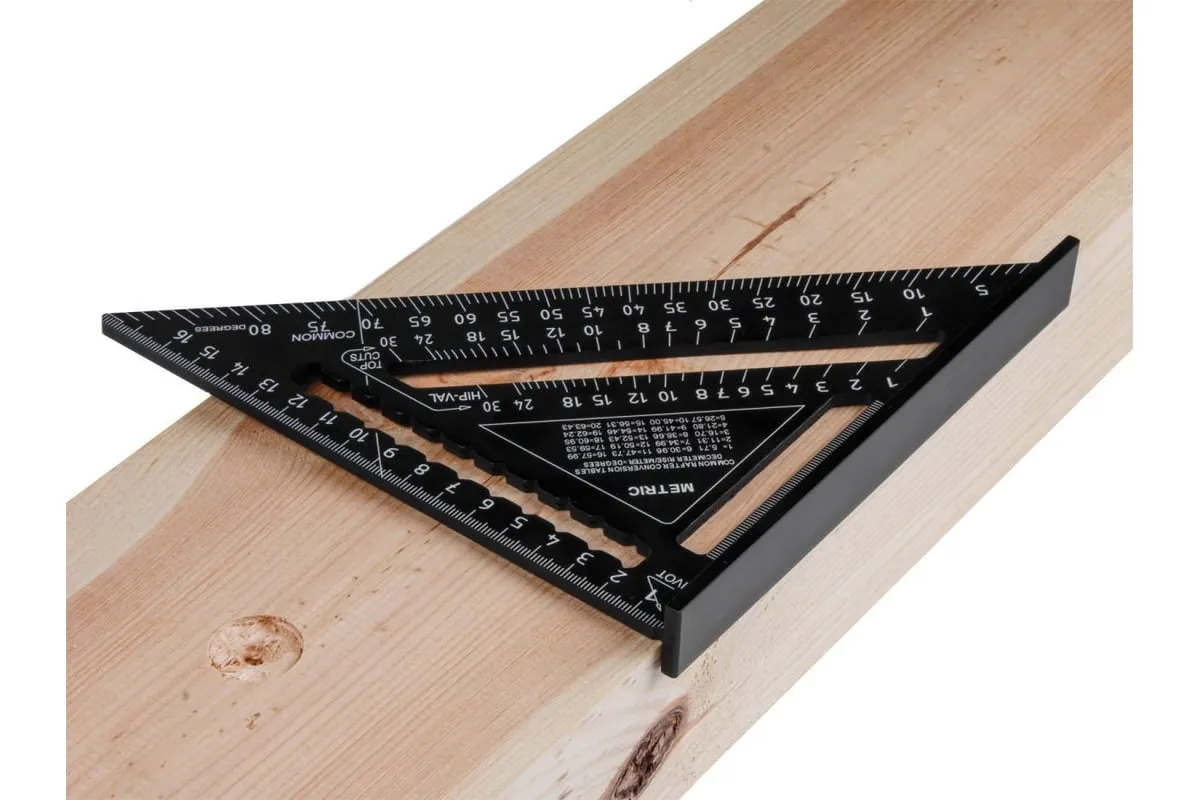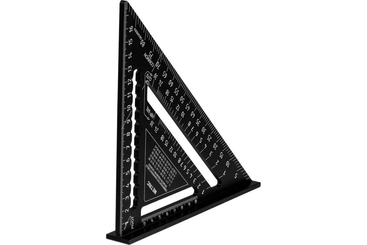 Угольник Свенсона (кровельный) предназначен для разметки коньков и стропил, удобен для откладывания прямых линий, параллельных или перпендикулярных основным направлениям детали. Изготовлен из алюминия. Шкала нанесена с помощью лазерной гравировки. Толщина профиля 4,2 мм.