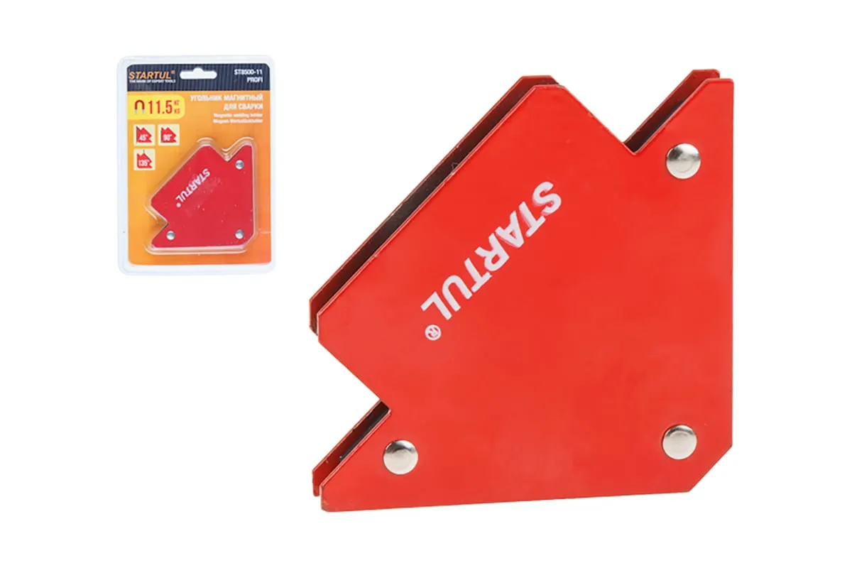 Угольник магнитный для сварки 11.5 кг STARTUL ST8500-11 предназначен для фиксации металлических деталей при сварке, пайке, сборке конструкций. Возможные углы: 45°, 90°, 135°.