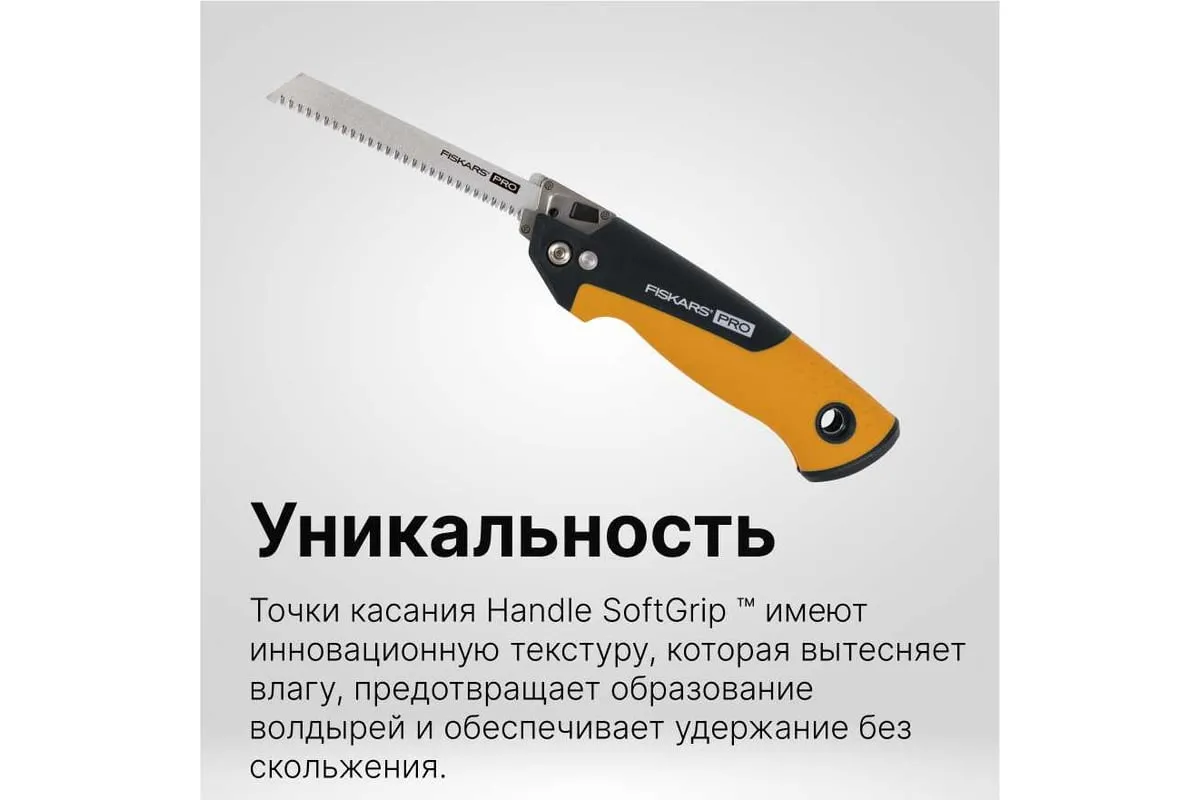 Универсальная складная пила предназначена для распила древесины. Комфортна за счет удобного хранения в поясе с инструментами.
