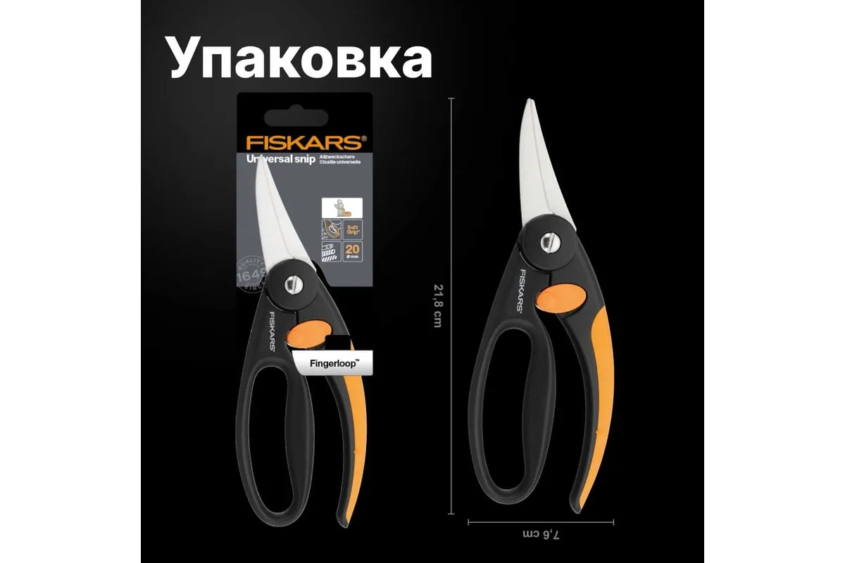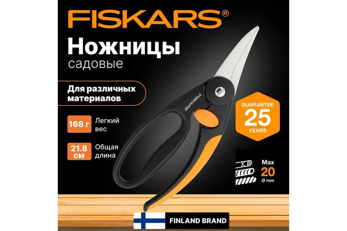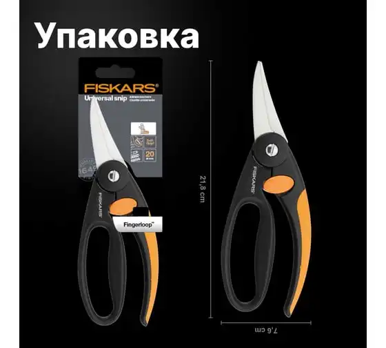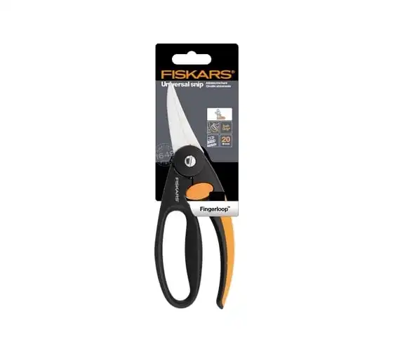 Универсальные ножницы Fiskars 1001533 (111450) созданы для комфортной и быстрой работы с различными материалами: пластиком, тонкими листами металла, веревками и т.п. Удобные рукоятки выполнены из полиамида, который был дополнительно армирован стекловолокном для повышения прочности и надежности. Лезвия изготовлены из нержавеющей стали, что обеспечивает долгий срок службы инструмента. Специальная защелка фиксирует ножницы в закрытом состоянии, когда они не используются.