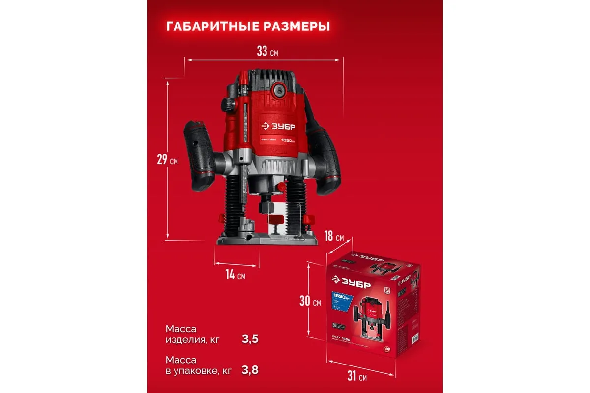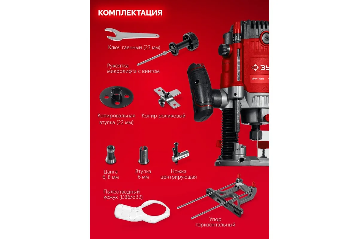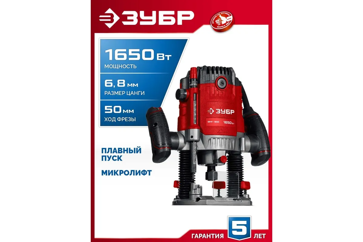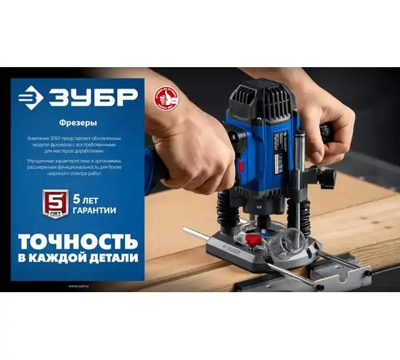 Фрезер ЗУБР – многофункциональное изделие для различных видов фрезерования (в т.ч. фигурного, по шаблону, по радиусу) различными типами фрез заготовок из дерева, древесно-стружечных плит и пластмасс, а при установке соответствующегосменного инструмента – металла. Неоспоримыми преимуществами ЗУБР 1650 Вт, 50 мм, универсальный фрезер ФМУ-1650 являются:
