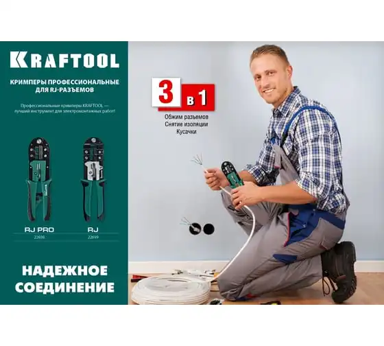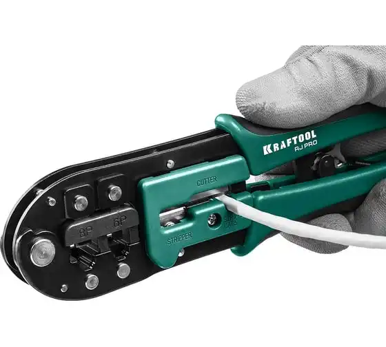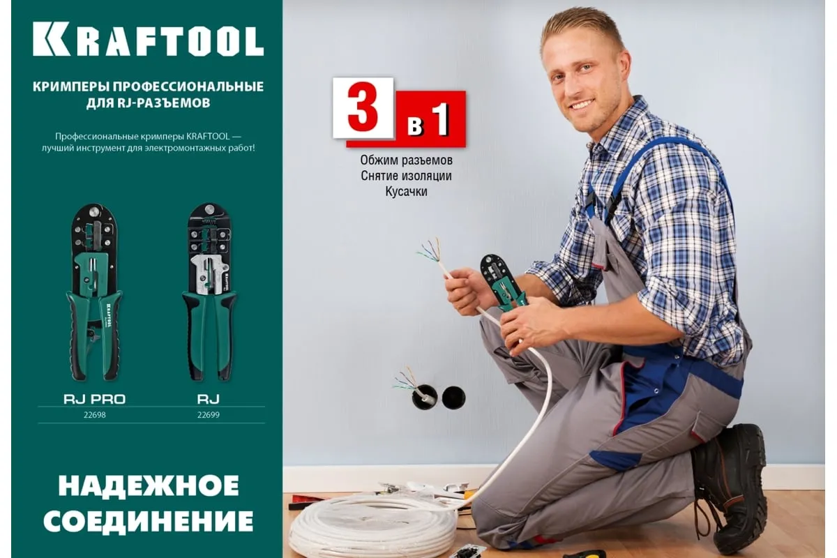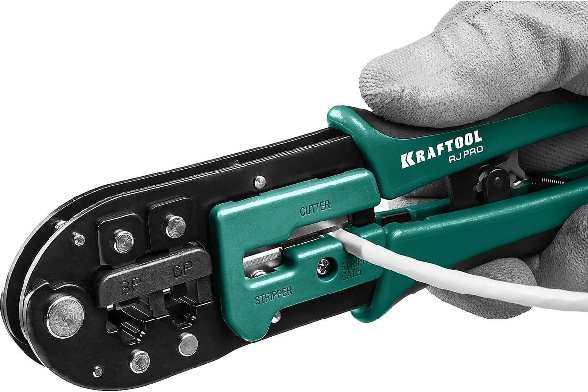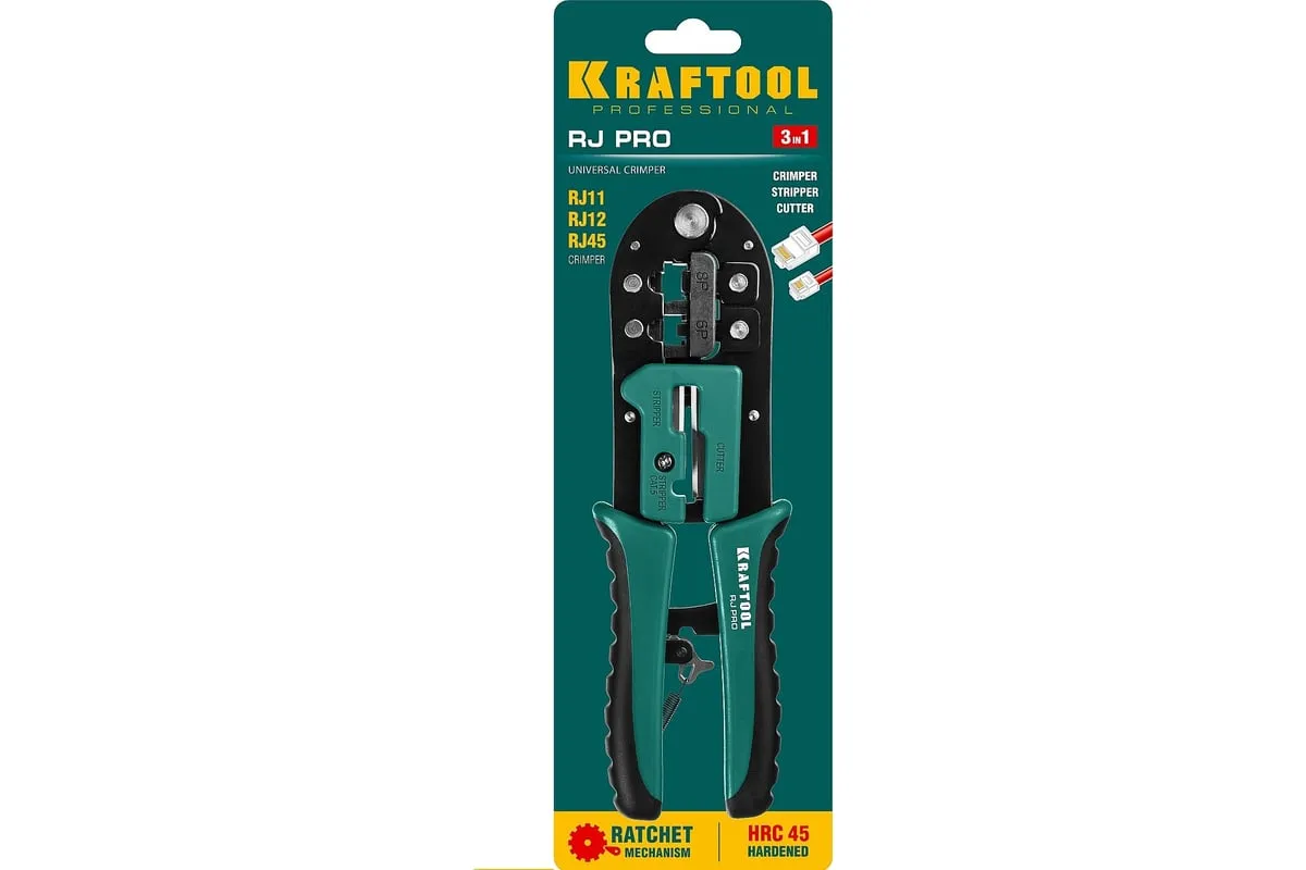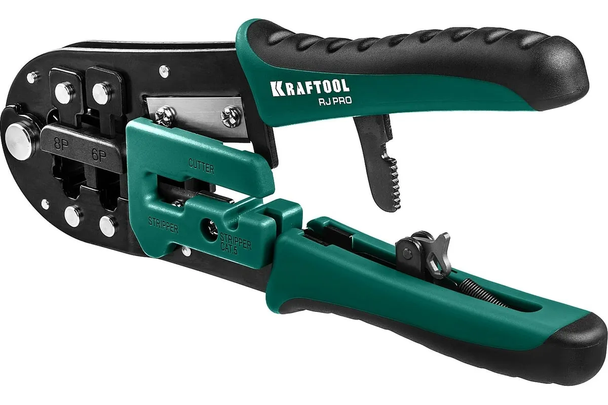 Универсальный кримпер KRAFTOOL RJ-Pro RJ45, RJ11/RJ12 22698 изготовлен из высококачественной инструментальной стали с закалкой рабочих поверхностей, предназначен для профессионального применения. Обладает повышенным ресурсом, обеспечивает наивысшее качество электромонтажных работ. Возвратная пружина увеличивает скорость работы. Специальная двойная заточка для чистого реза кабеля.