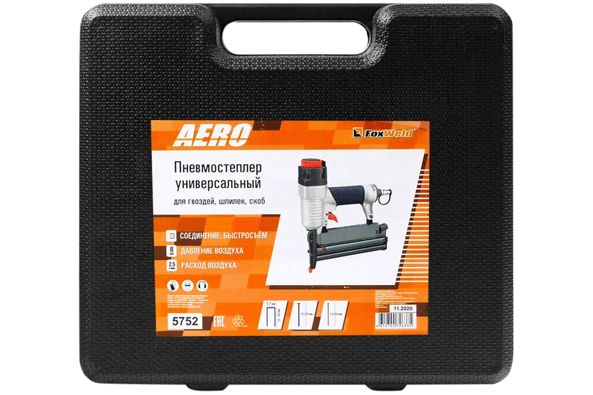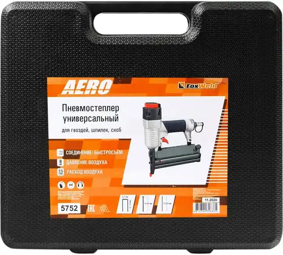 Универсальный пневмостеплер для гвоздей и шпилек Foxweld AERO 5752 применяется для крепления металлическими скобами, гвоздями или шпильками деревянных реек, фольги, ткани любого типа, бумаги, картона, проволочной сетки и проч. к деревянным, фанерным и другим конструкциям. Инструмент отличается простой конструкцией, удобством применения и функциональностью.