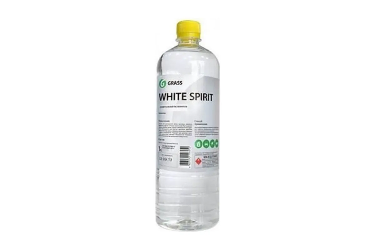 Универсальный растворитель (флакон 1 л) Grass White Spirit 213101 удаляет пятна масла, различных жиров, нефтепродуктов, смолистых веществ, краски и других составов с поверхности двигателя и прочих автоэлементов из пластика, кожи, резины. Допускается использование растворителя для предварительной химической чистки тканей.
